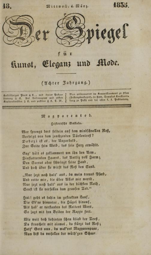Der Spiegel für Kunst, Eleganz und Mode. 1835-1840