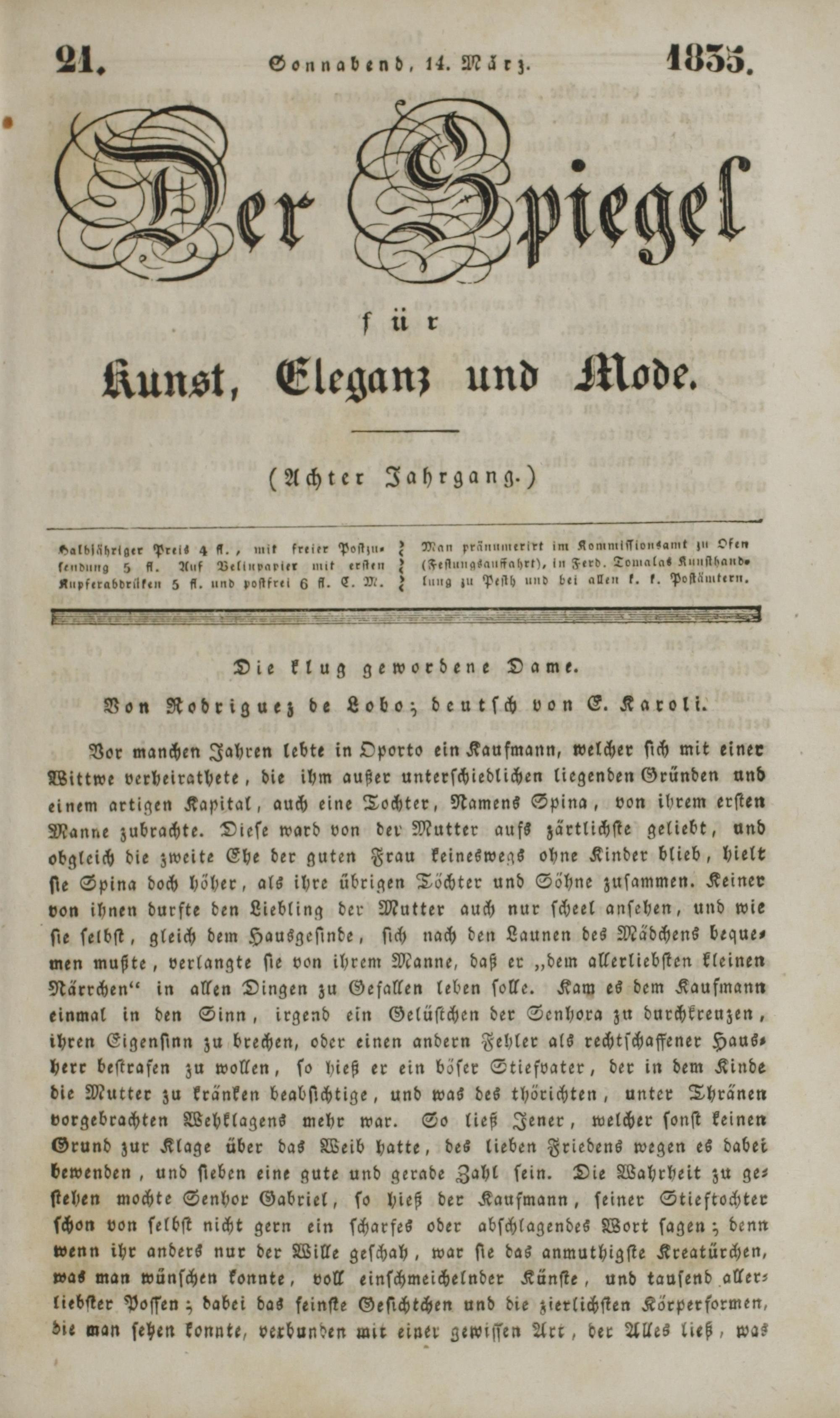 Der Spiegel für Kunst, Eleganz und Mode. 1835-1840
