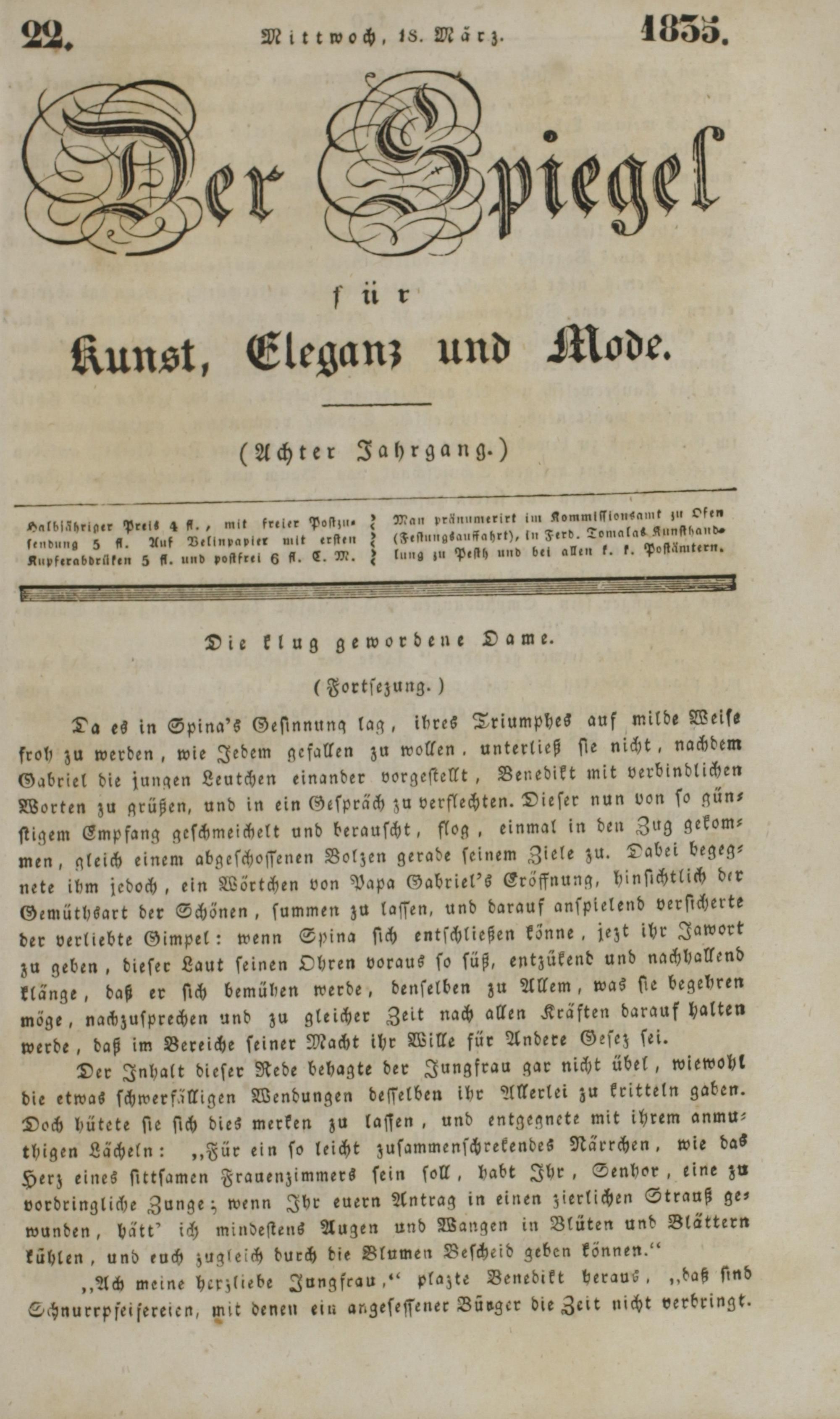 Der Spiegel für Kunst, Eleganz und Mode. 1835-1840