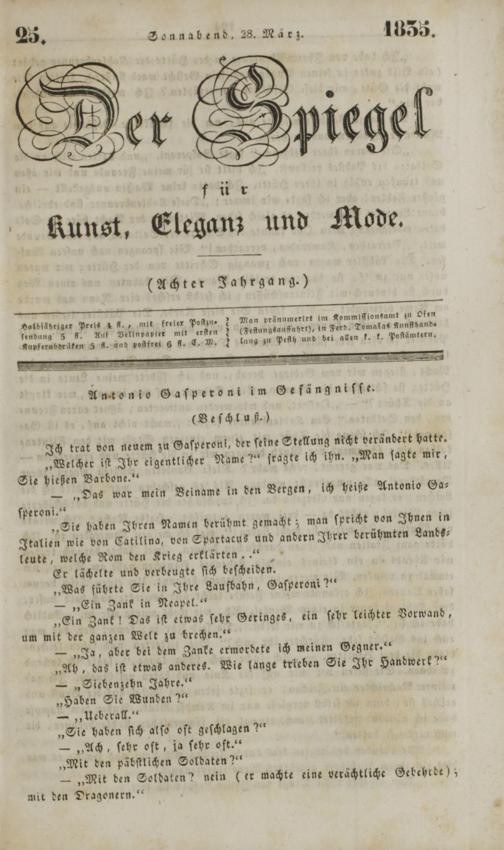Der Spiegel für Kunst, Eleganz und Mode. 1835-1840