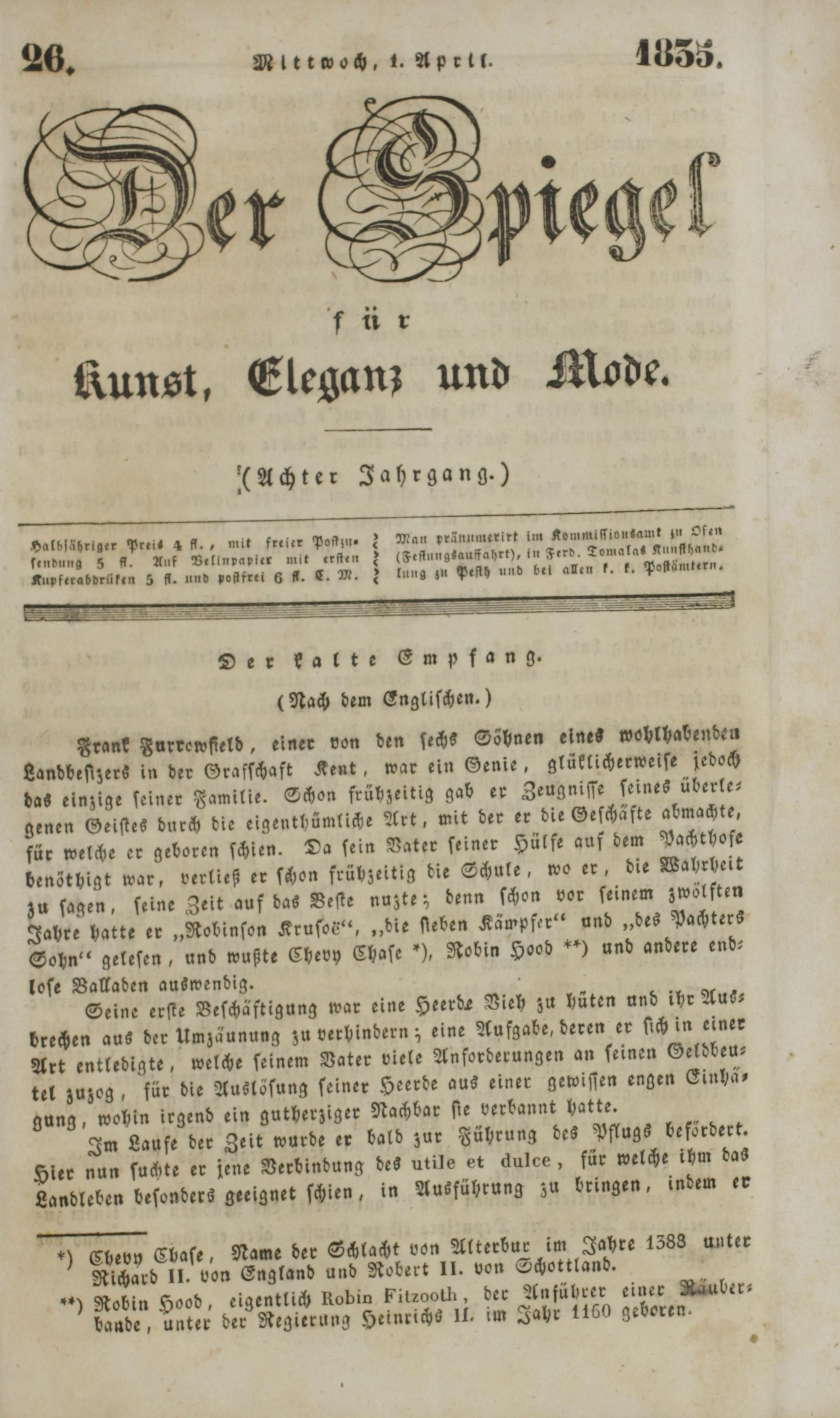 Der Spiegel für Kunst, Eleganz und Mode. 1835-1840