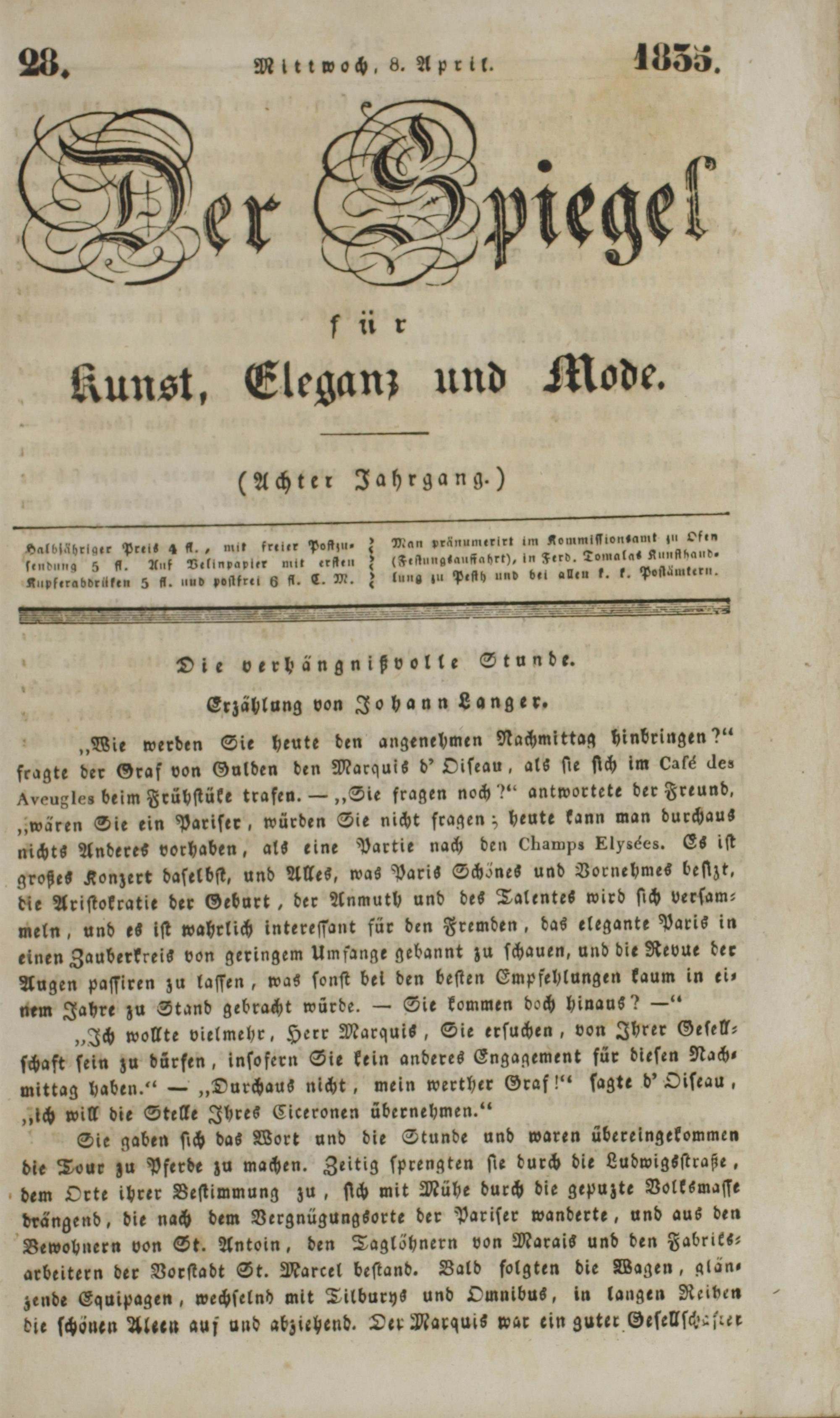 Der Spiegel für Kunst, Eleganz und Mode. 1835-1840