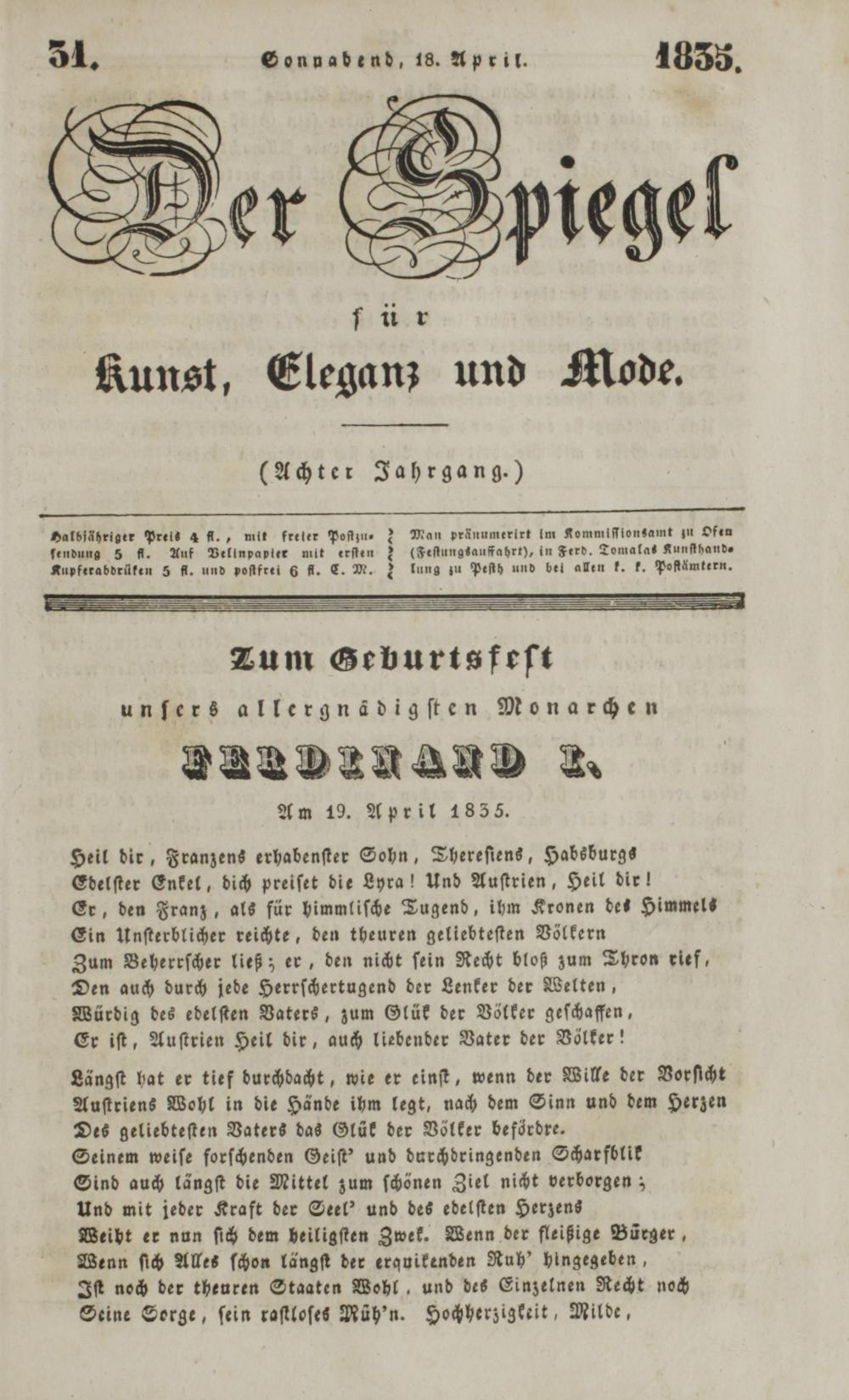 Der Spiegel für Kunst, Eleganz und Mode. 1835-1840