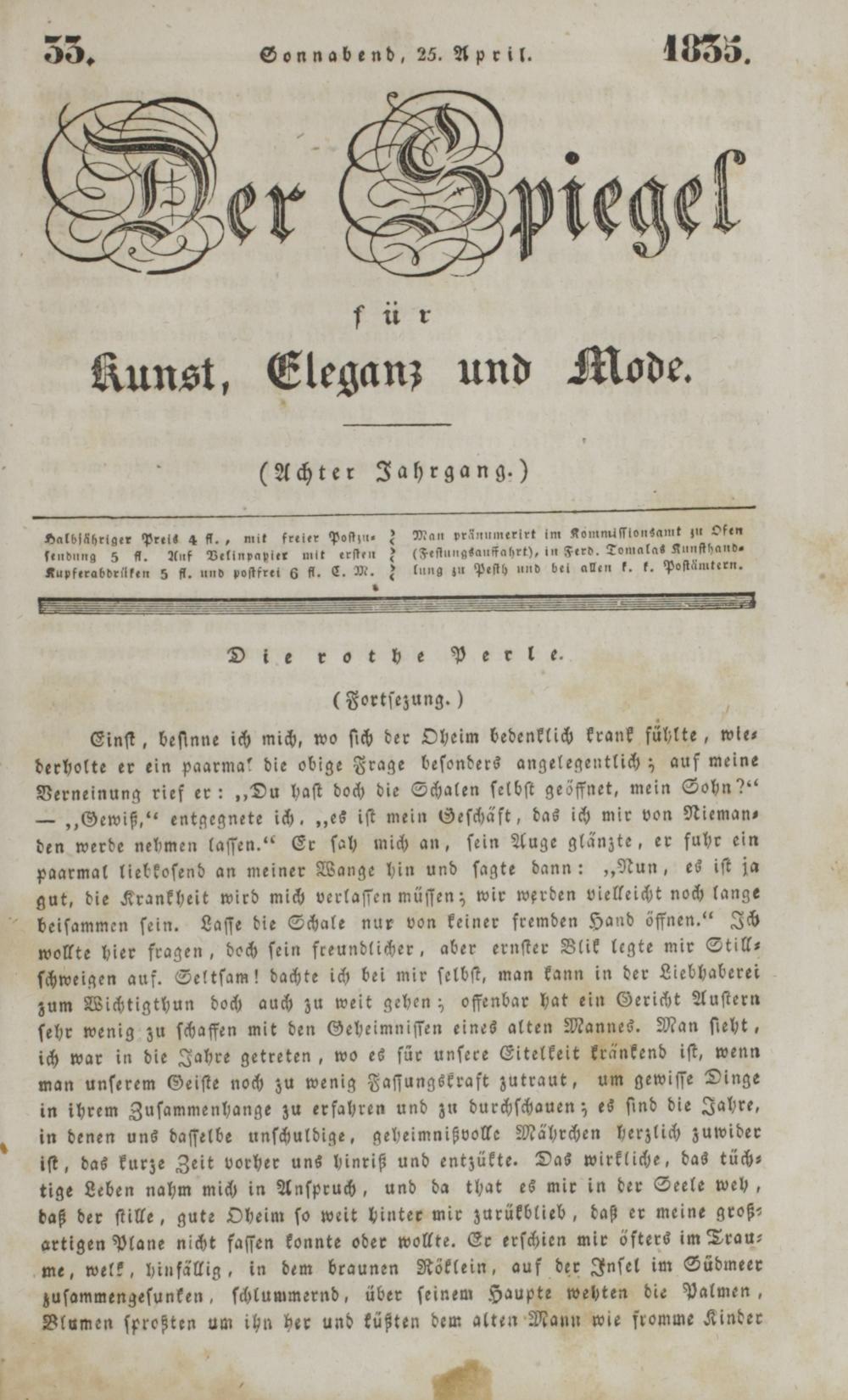 Der Spiegel für Kunst, Eleganz und Mode. 1835-1840