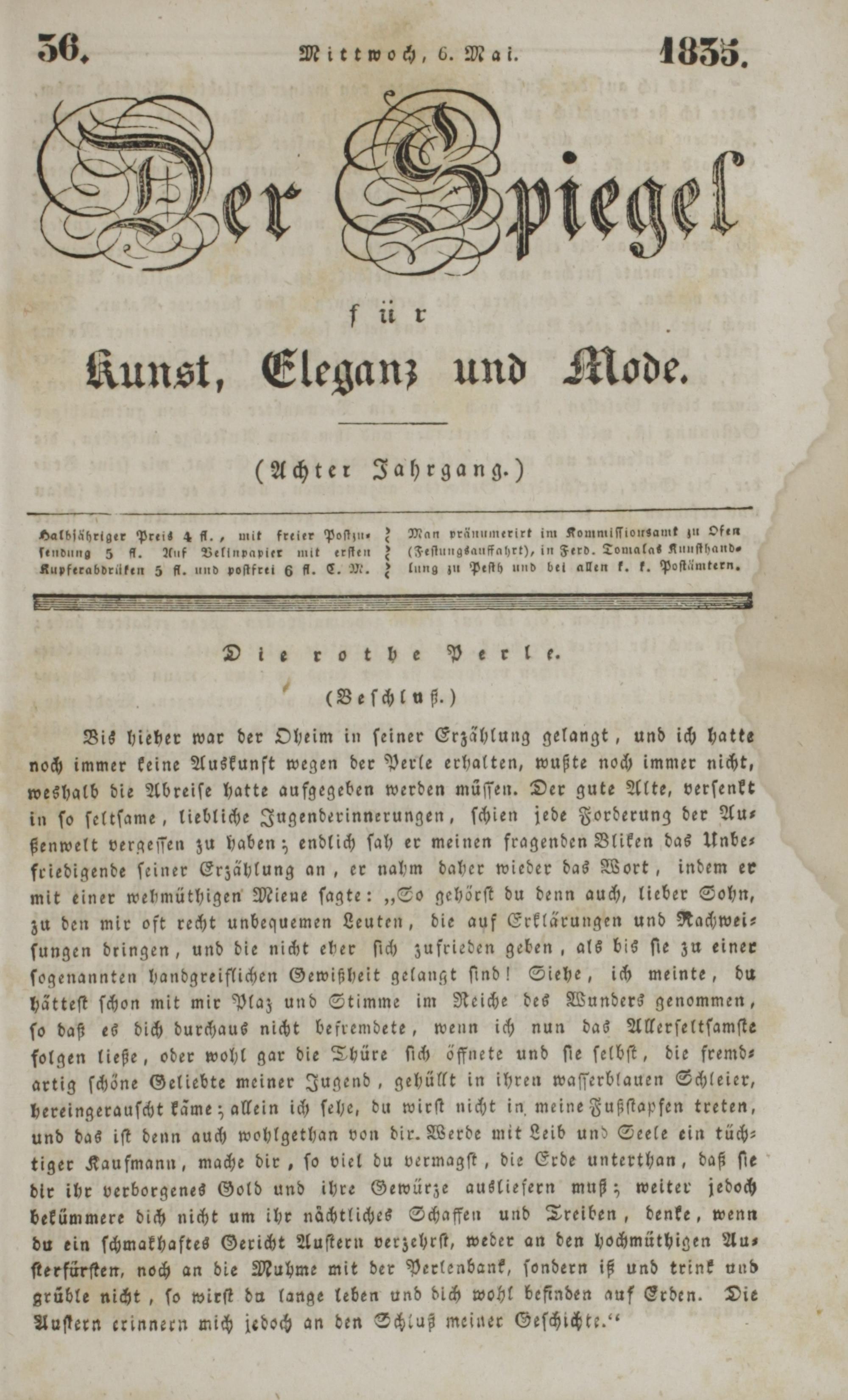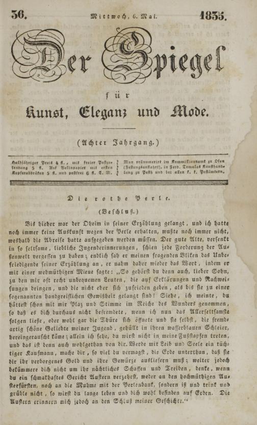 Der Spiegel für Kunst, Eleganz und Mode. 1835-1840