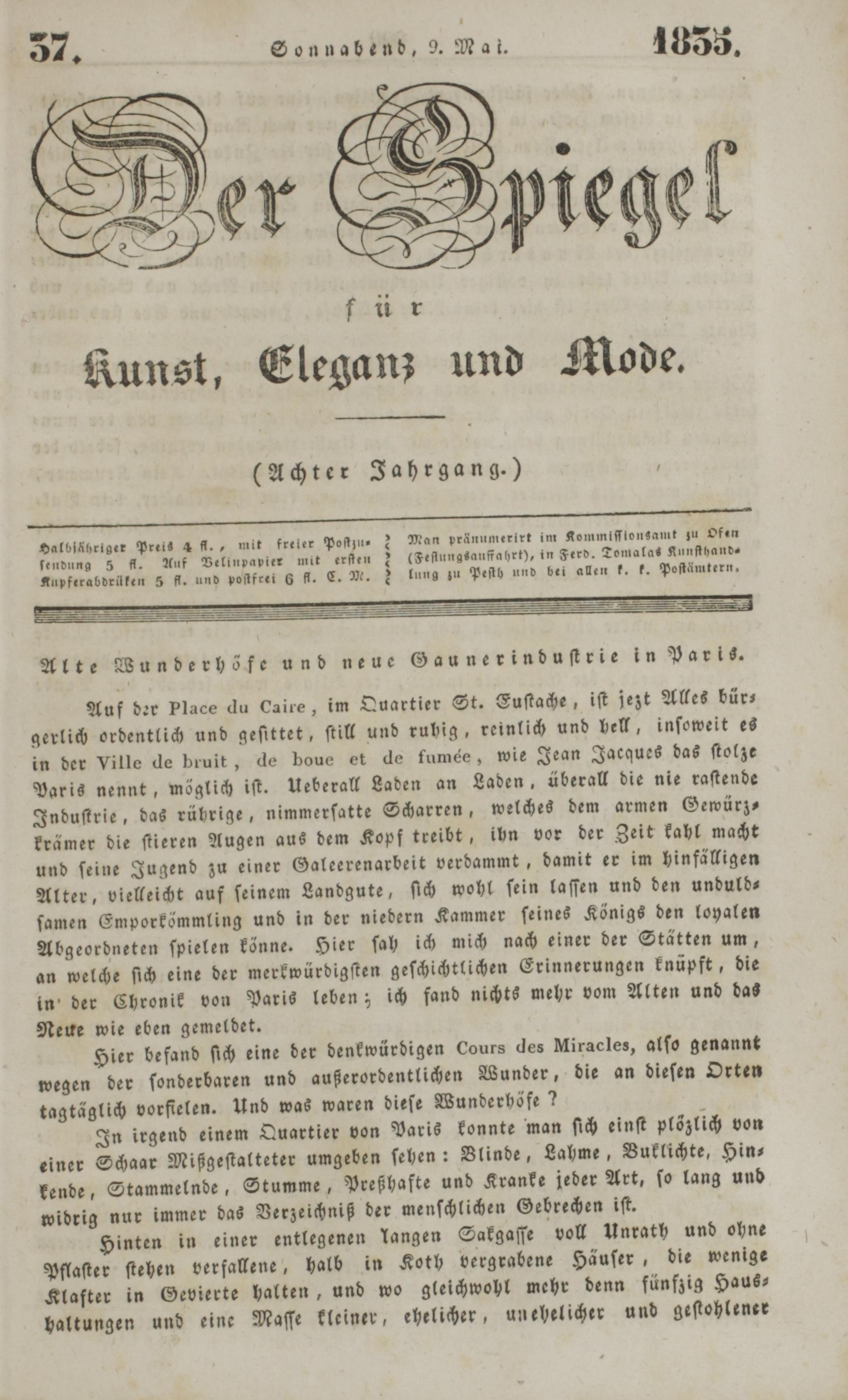 Der Spiegel für Kunst, Eleganz und Mode. 1835-1840