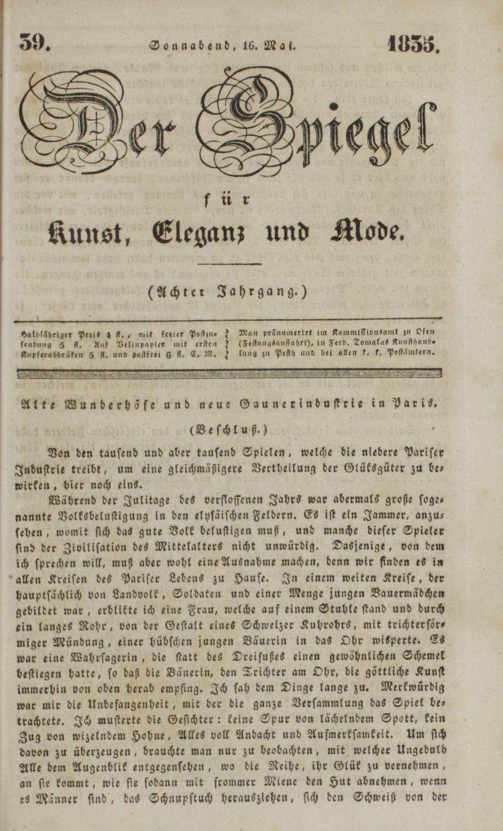 Der Spiegel für Kunst, Eleganz und Mode. 1835-1840