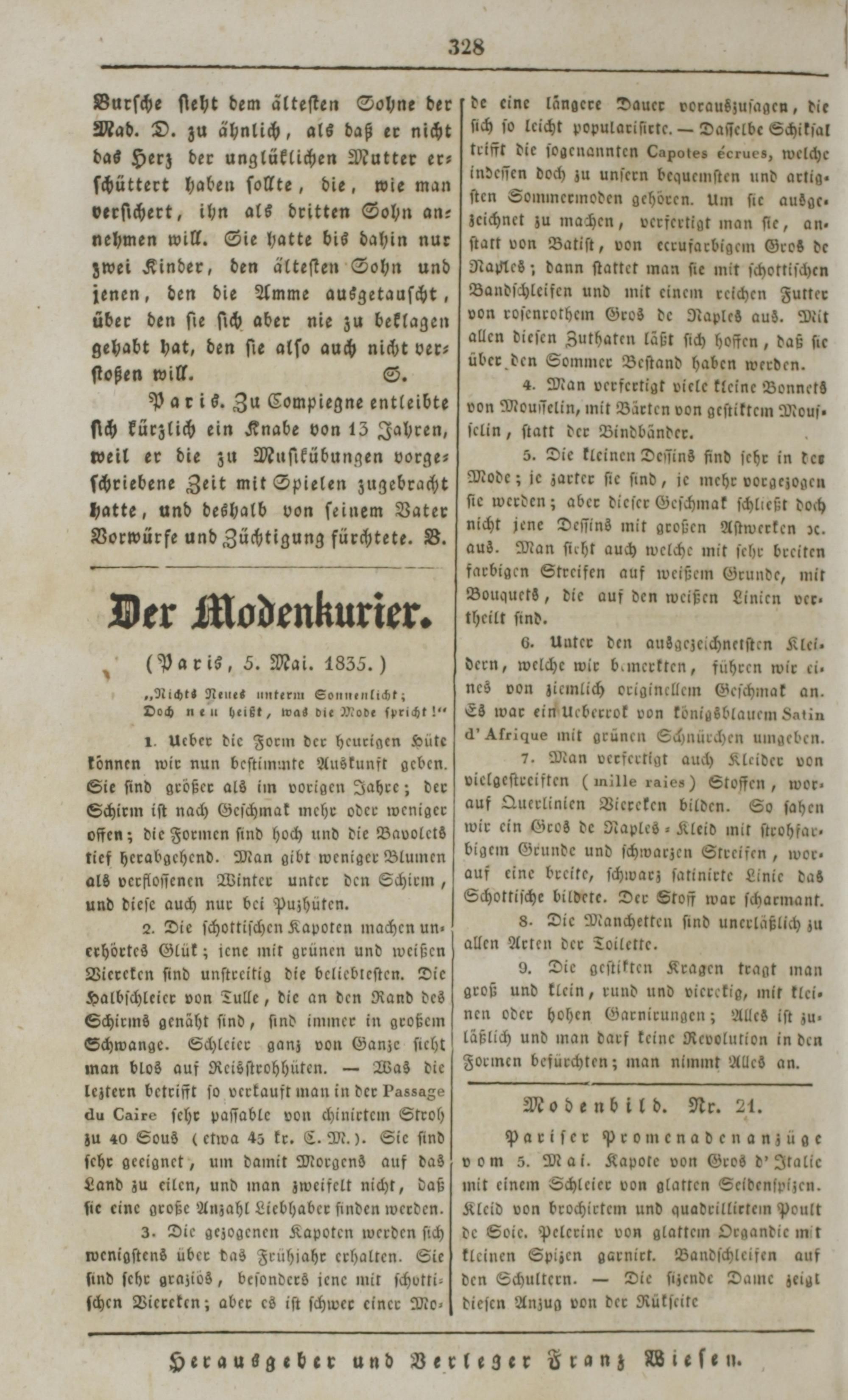 Der Spiegel für Kunst, Eleganz und Mode. 1835-1840