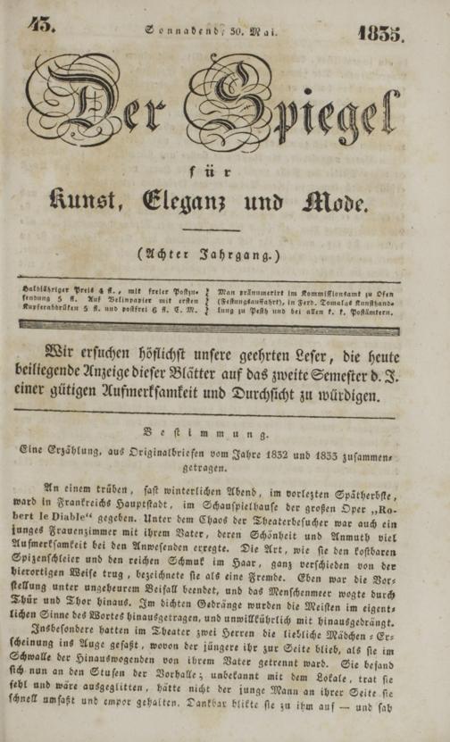 Der Spiegel für Kunst, Eleganz und Mode. 1835-1840