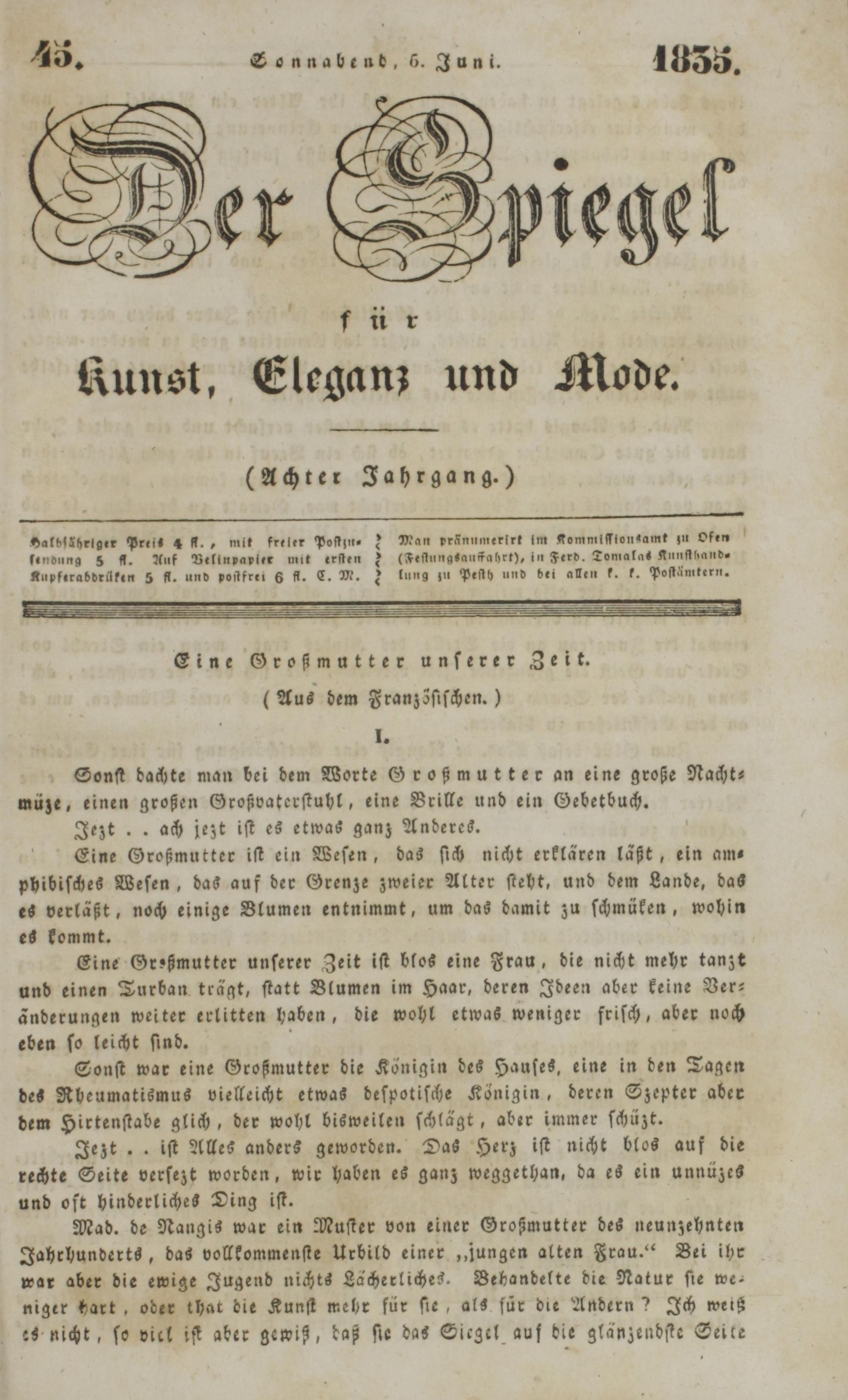 Der Spiegel für Kunst, Eleganz und Mode. 1835-1840