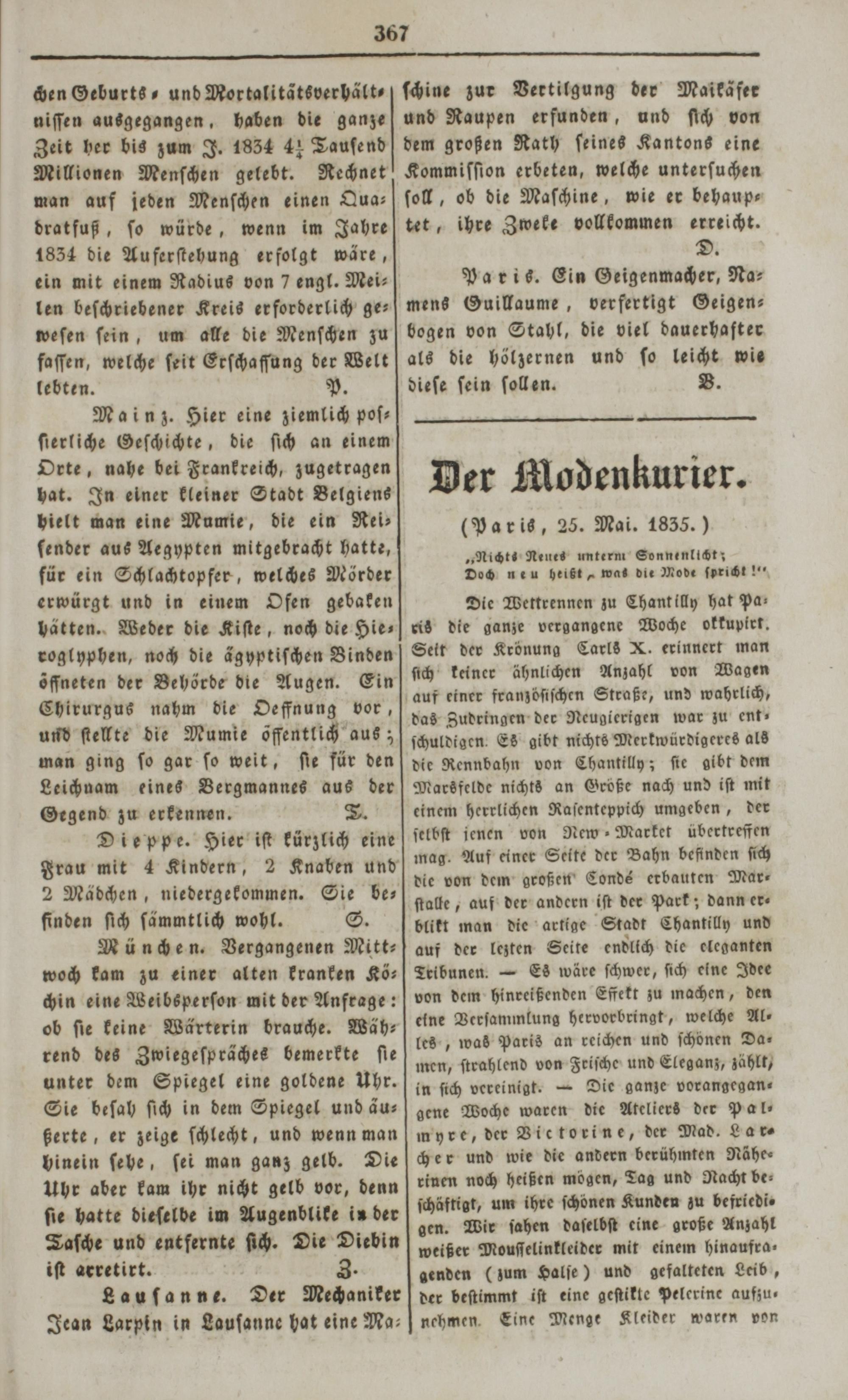 Der Spiegel für Kunst, Eleganz und Mode. 1835-1840