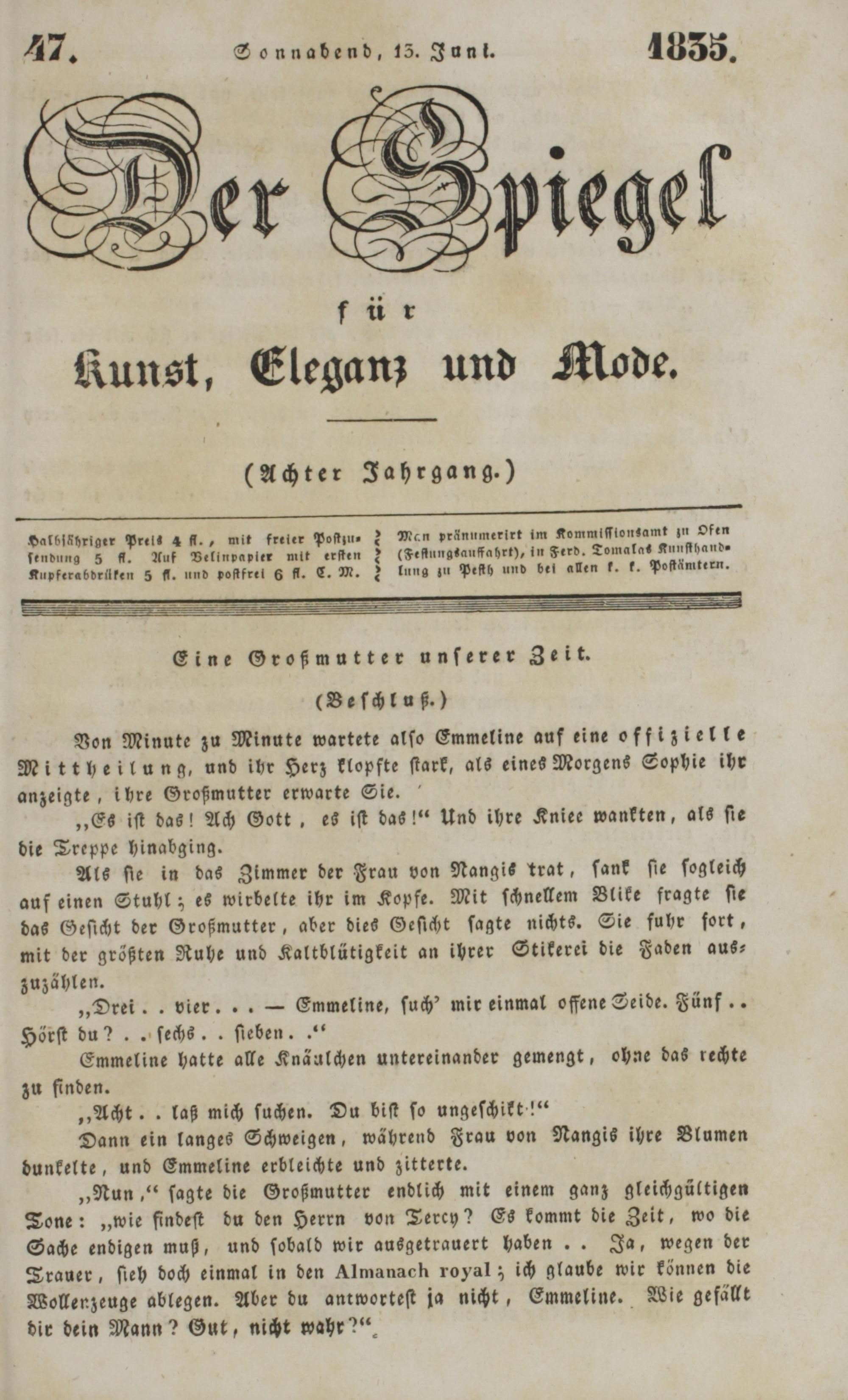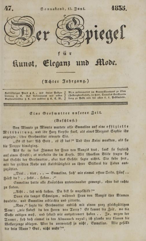 Der Spiegel für Kunst, Eleganz und Mode. 1835-1840
