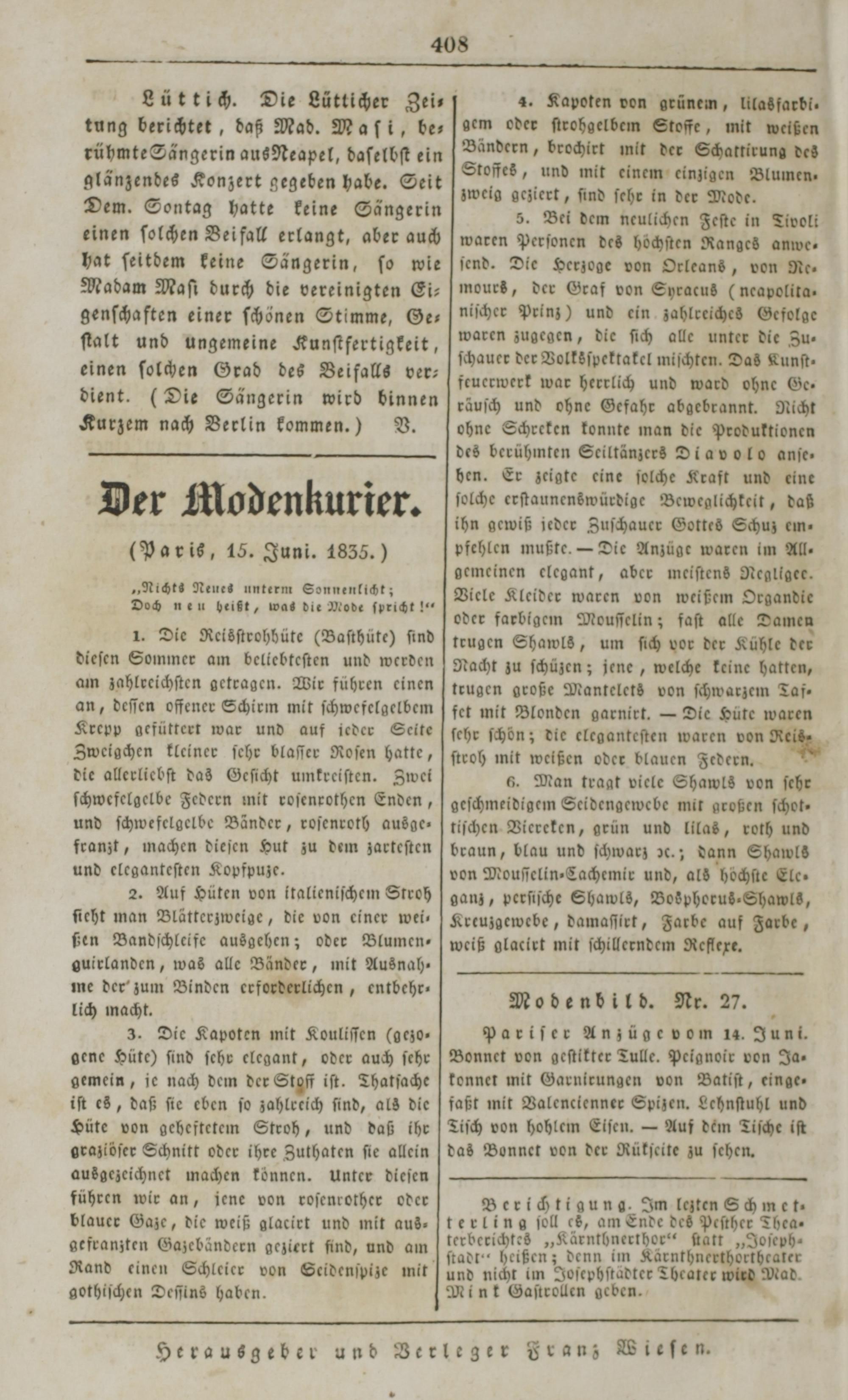 Der Spiegel für Kunst, Eleganz und Mode. 1835-1840