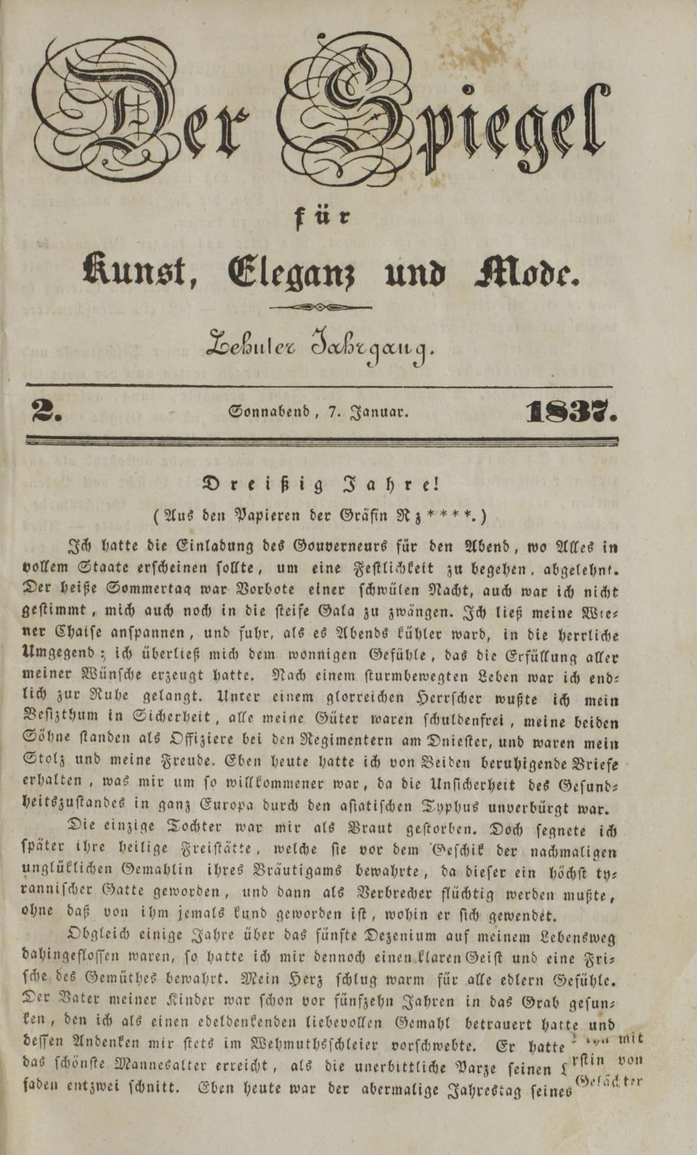 Der Spiegel für Kunst, Eleganz und Mode. 1835-1840