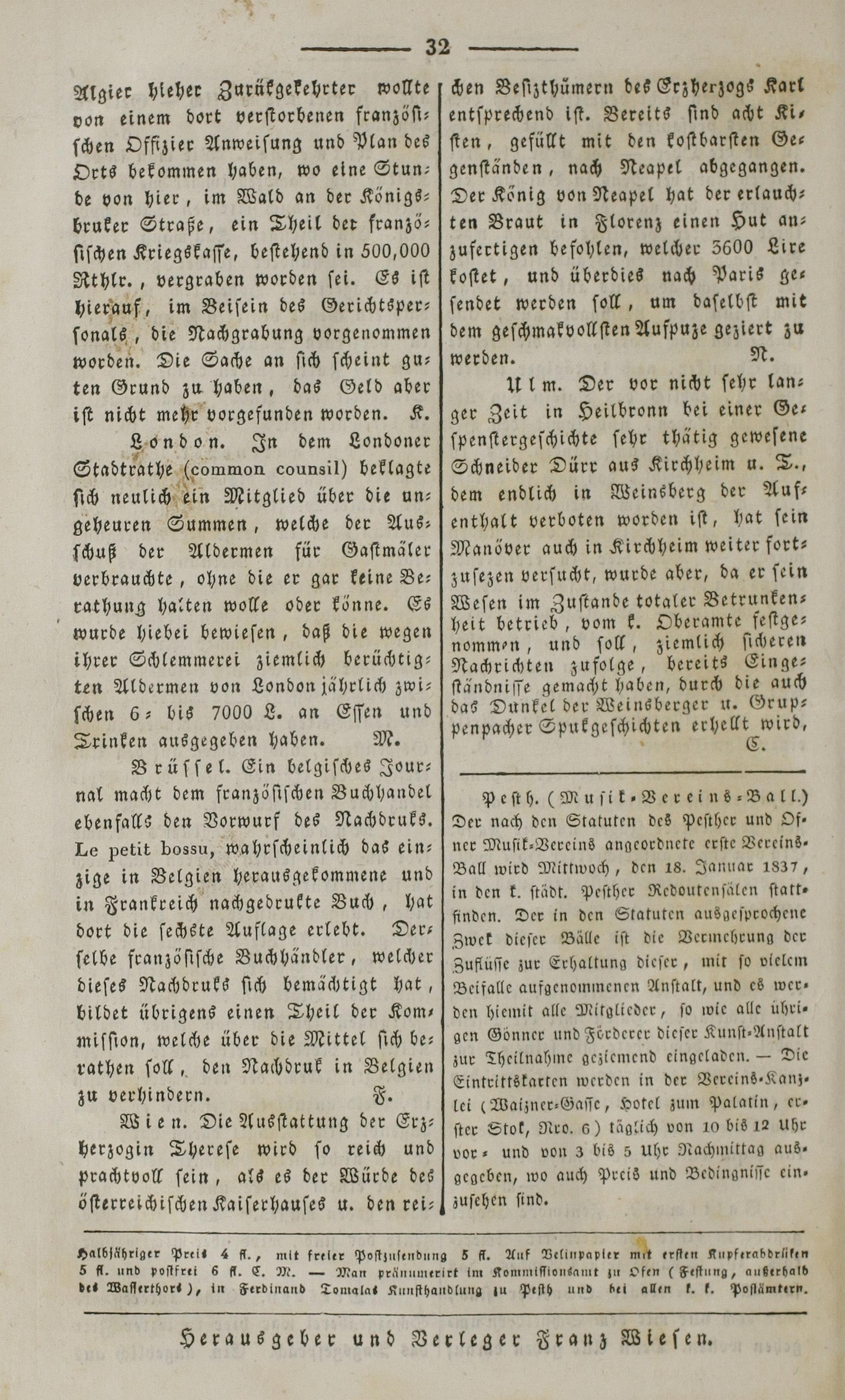 Der Spiegel für Kunst, Eleganz und Mode. 1835-1840