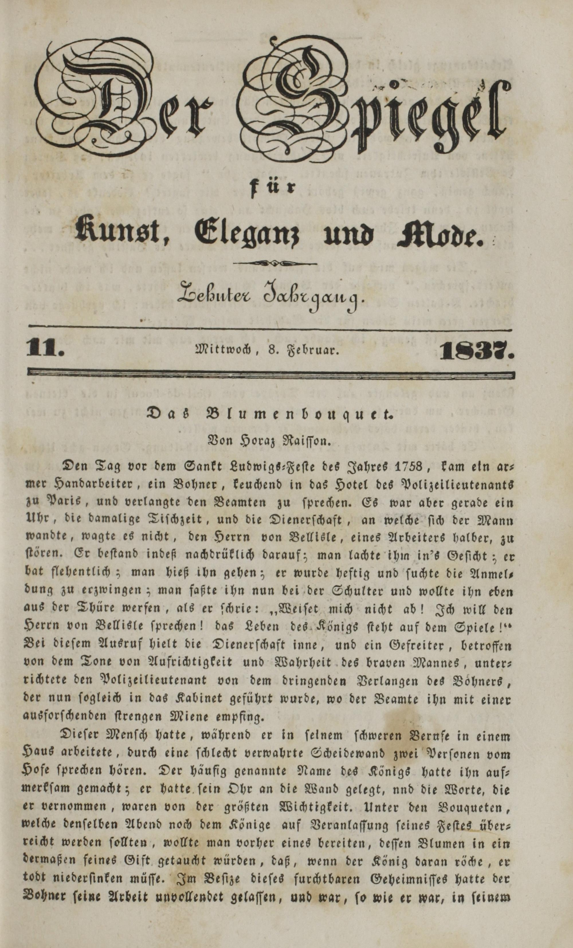 Der Spiegel für Kunst, Eleganz und Mode. 1835-1840