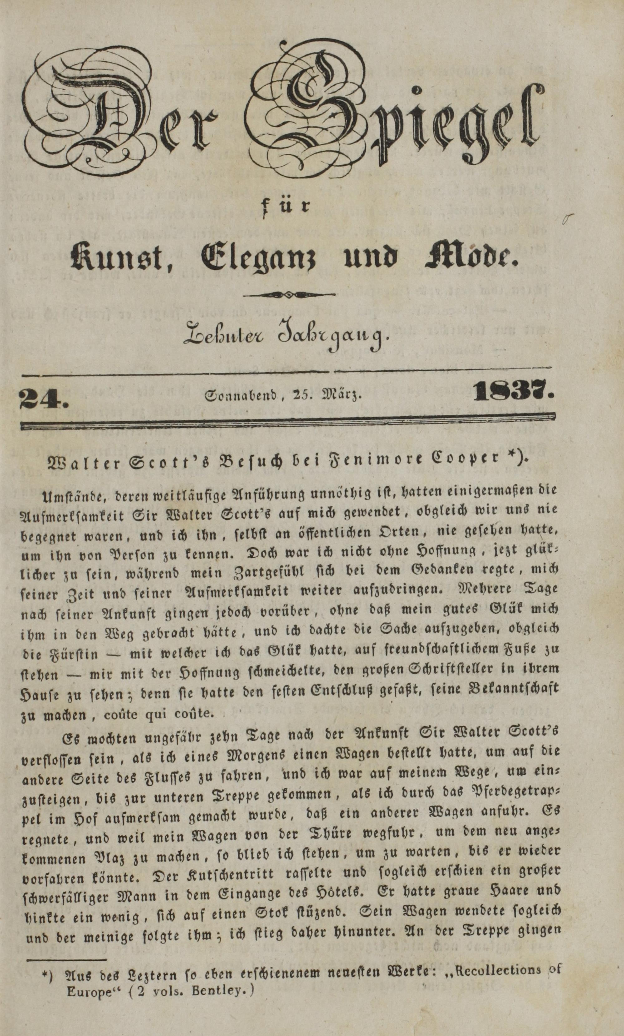 Der Spiegel für Kunst, Eleganz und Mode. 1835-1840