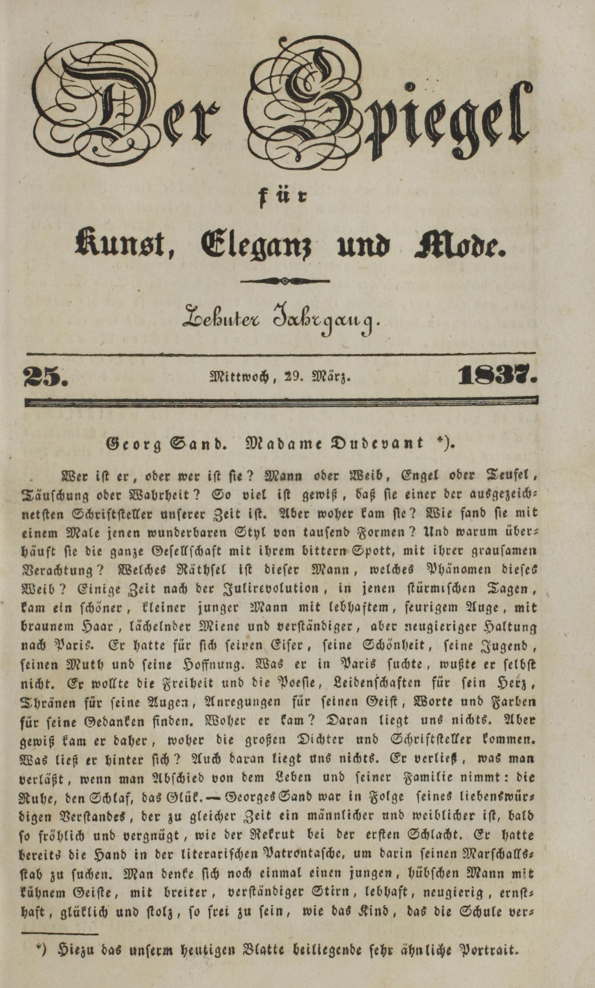 Der Spiegel für Kunst, Eleganz und Mode. 1835-1840
