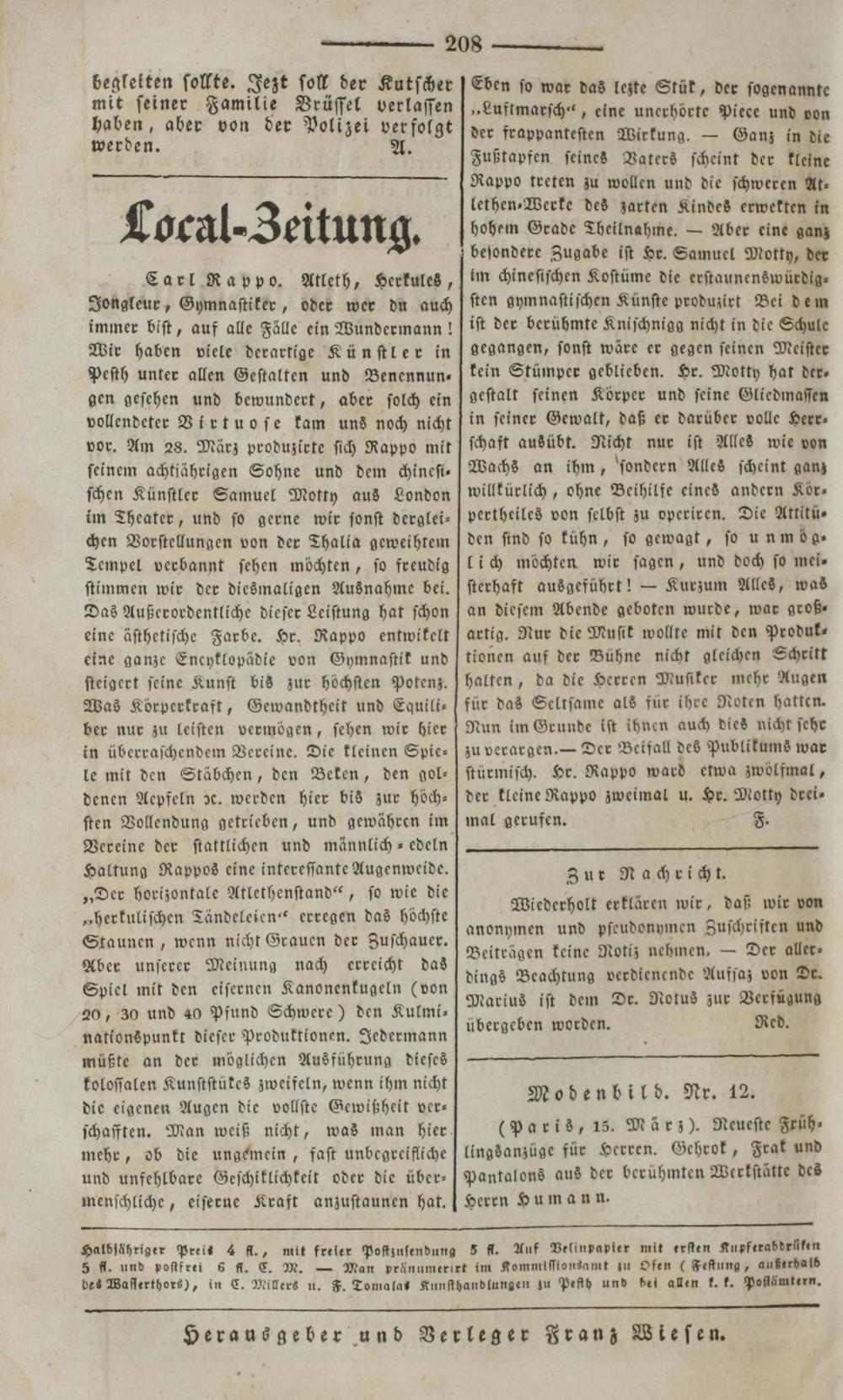 Der Spiegel für Kunst, Eleganz und Mode. 1835-1840