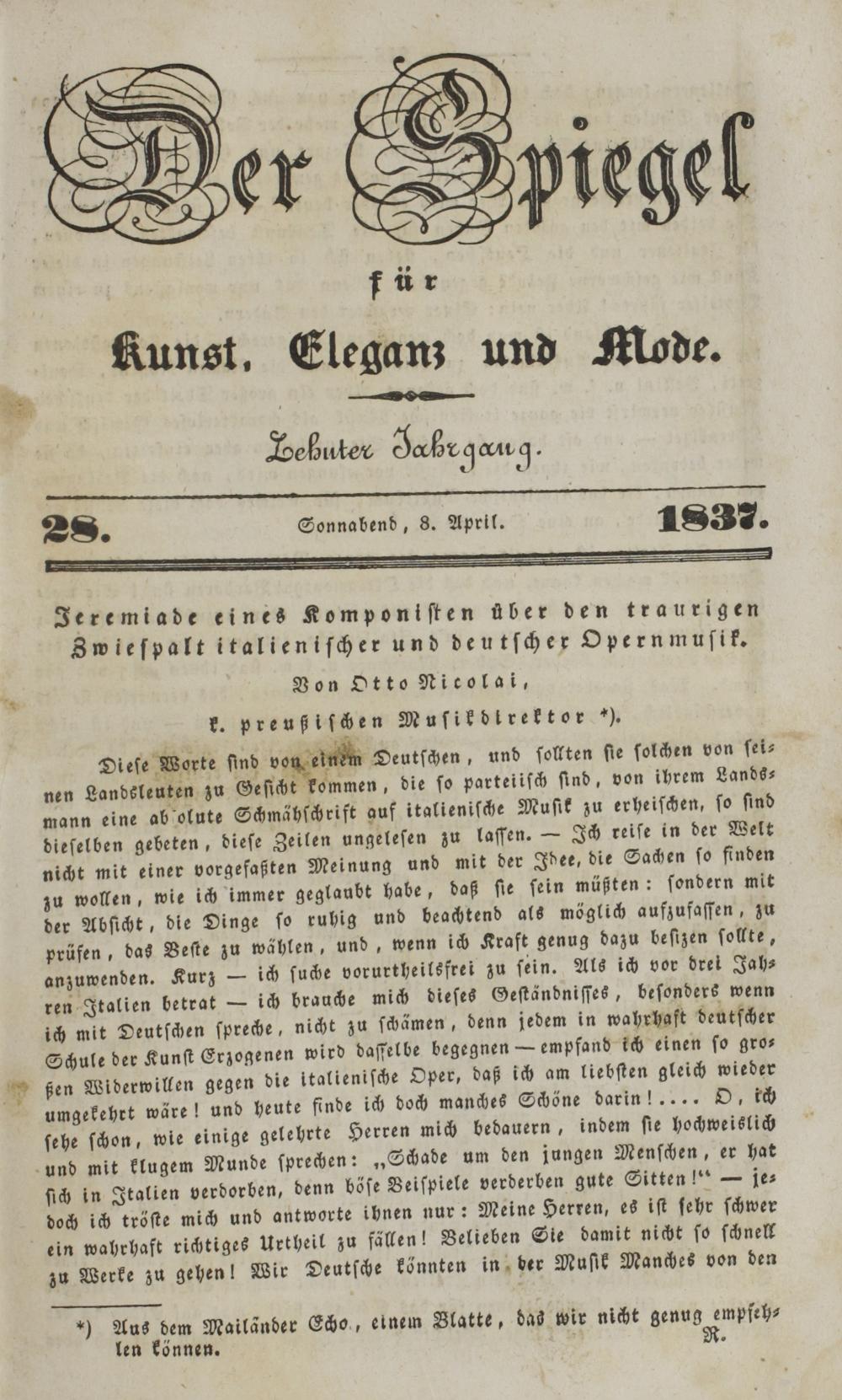 Der Spiegel für Kunst, Eleganz und Mode. 1835-1840