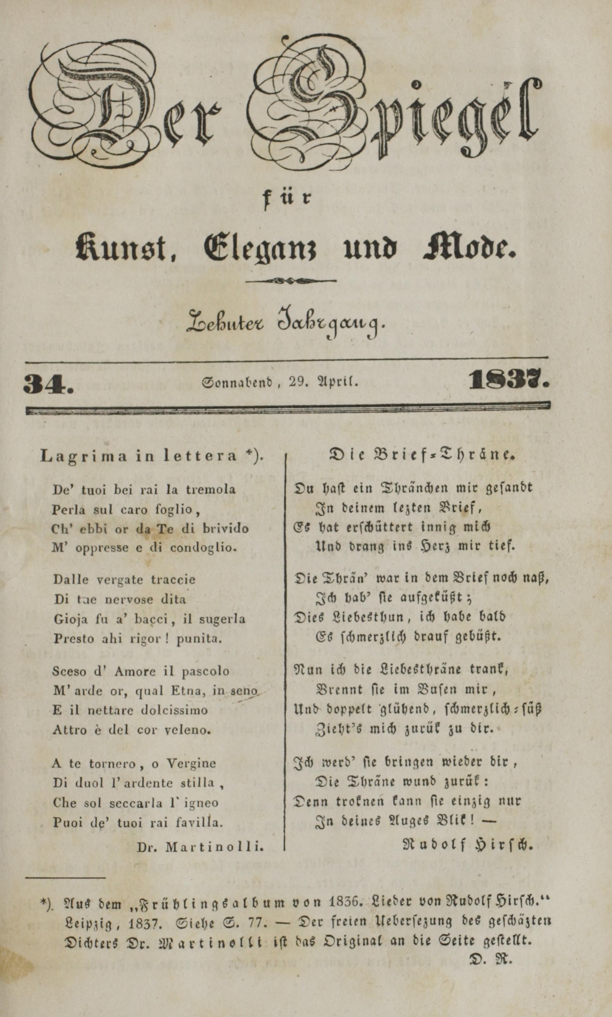 Der Spiegel für Kunst, Eleganz und Mode. 1835-1840