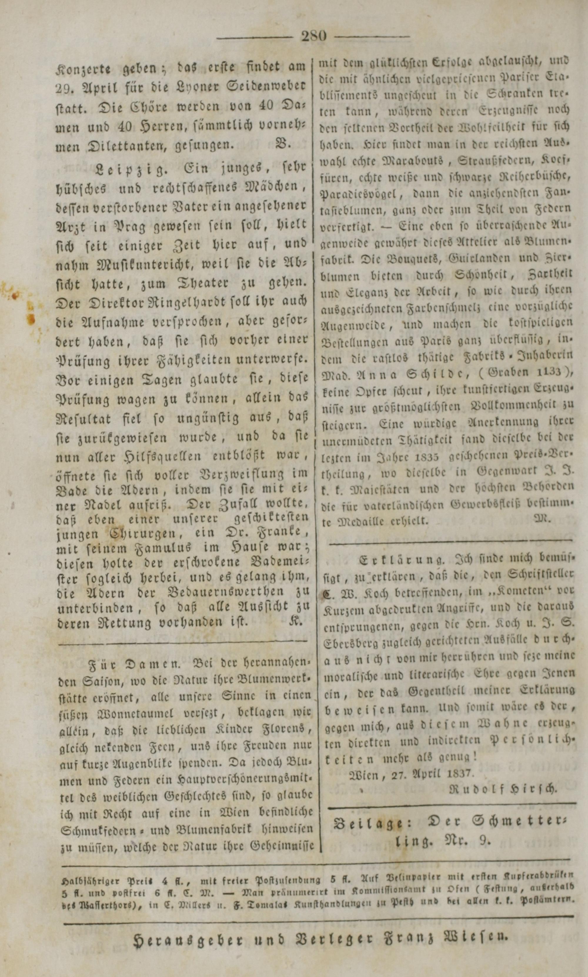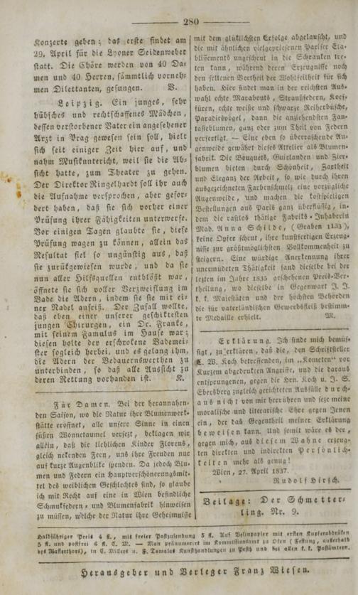 Der Spiegel für Kunst, Eleganz und Mode. 1835-1840