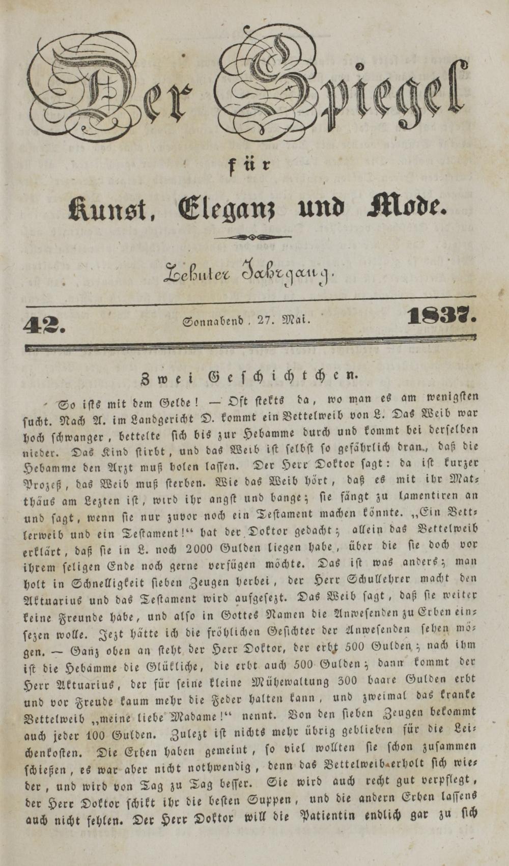 Der Spiegel für Kunst, Eleganz und Mode. 1835-1840