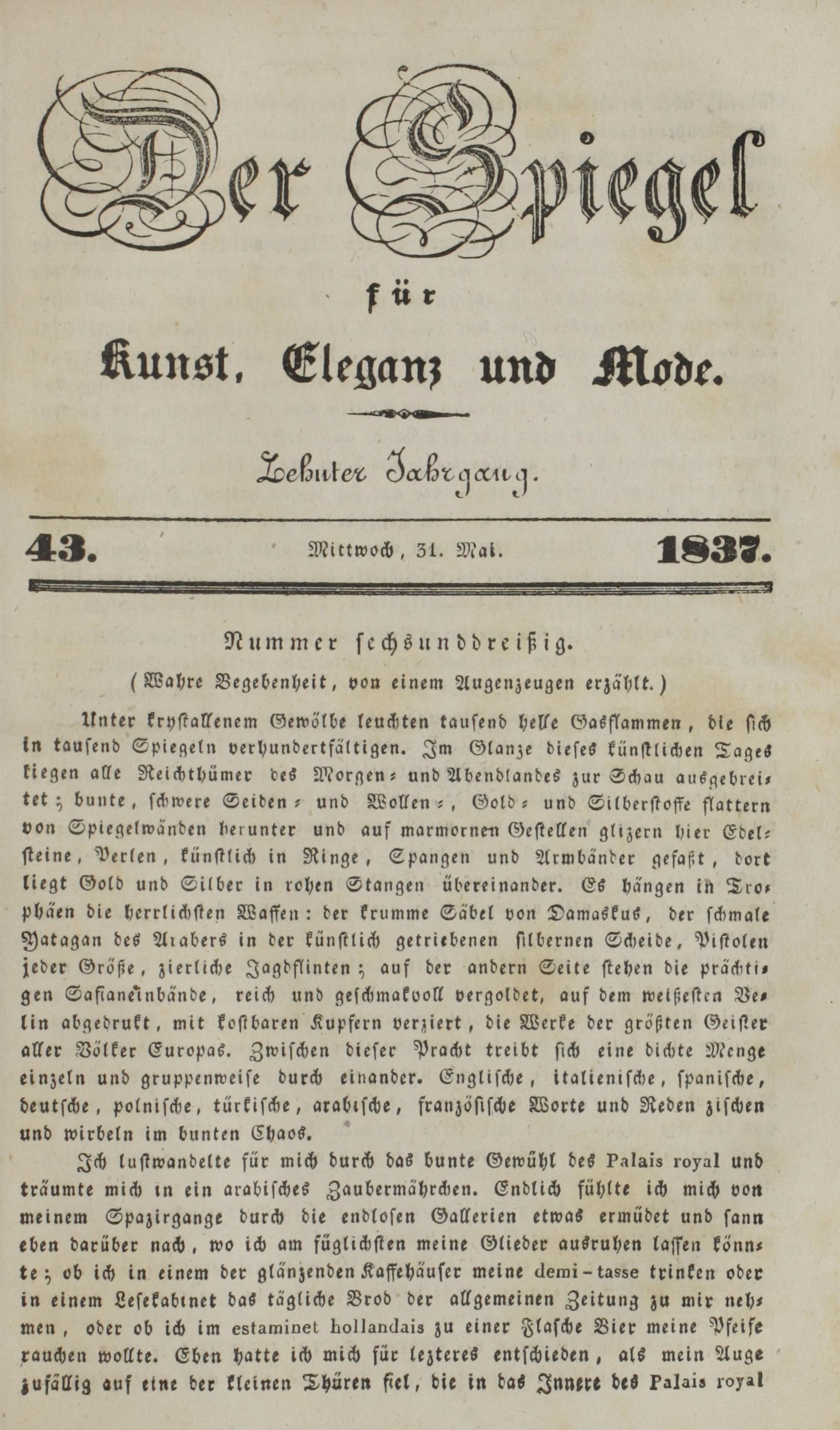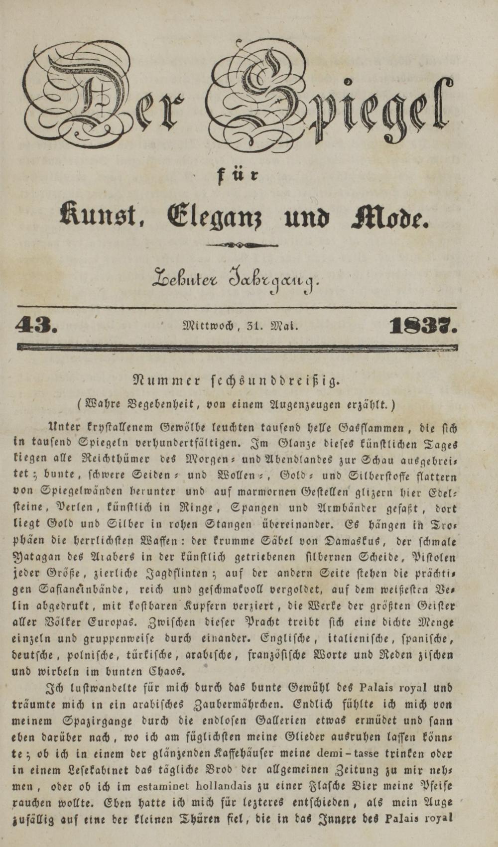 Der Spiegel für Kunst, Eleganz und Mode. 1835-1840