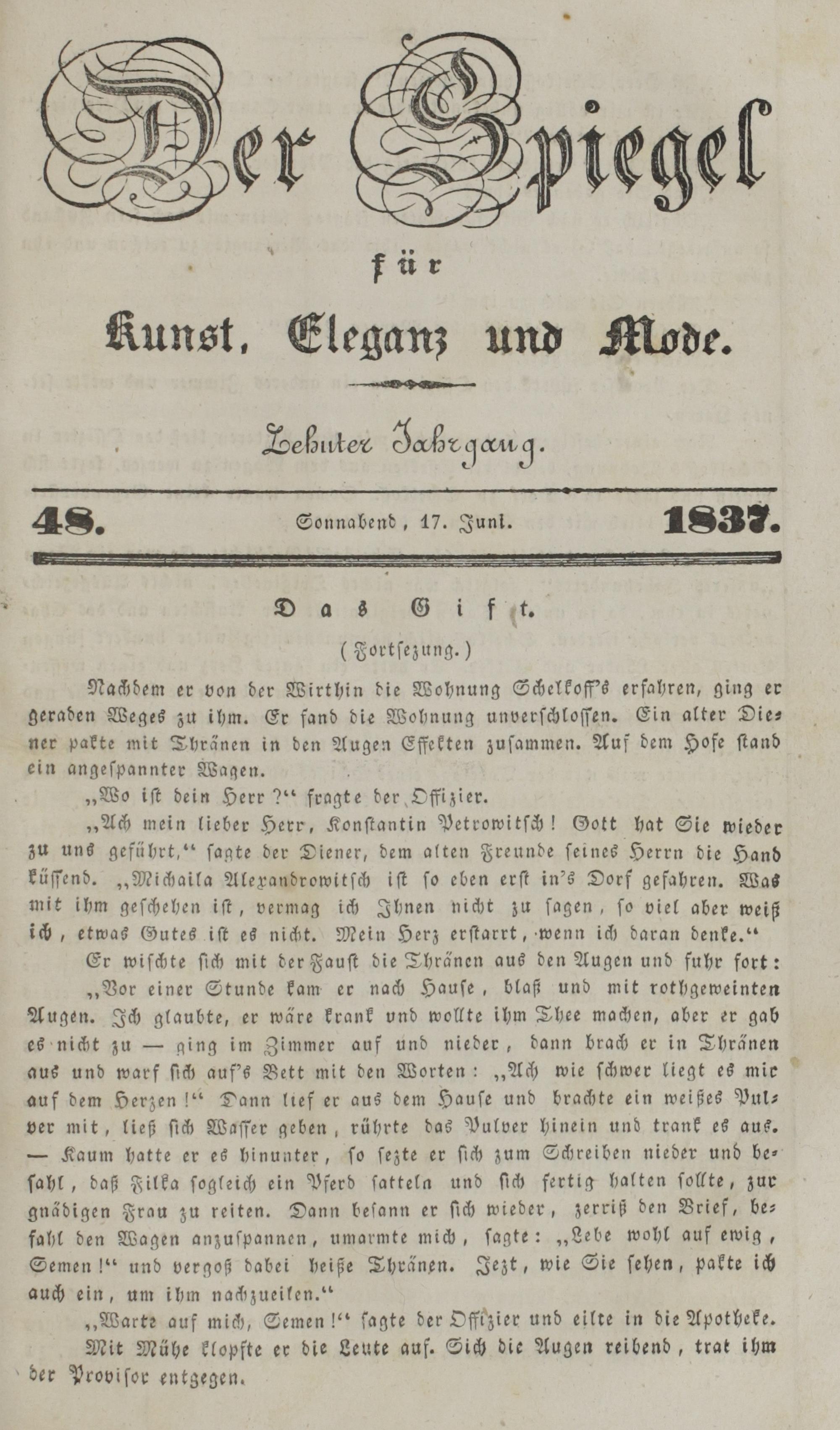 Der Spiegel für Kunst, Eleganz und Mode. 1835-1840