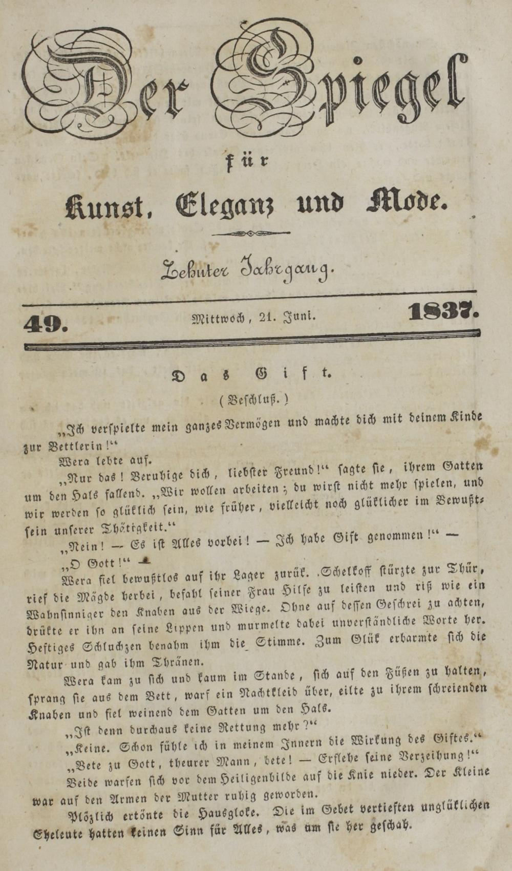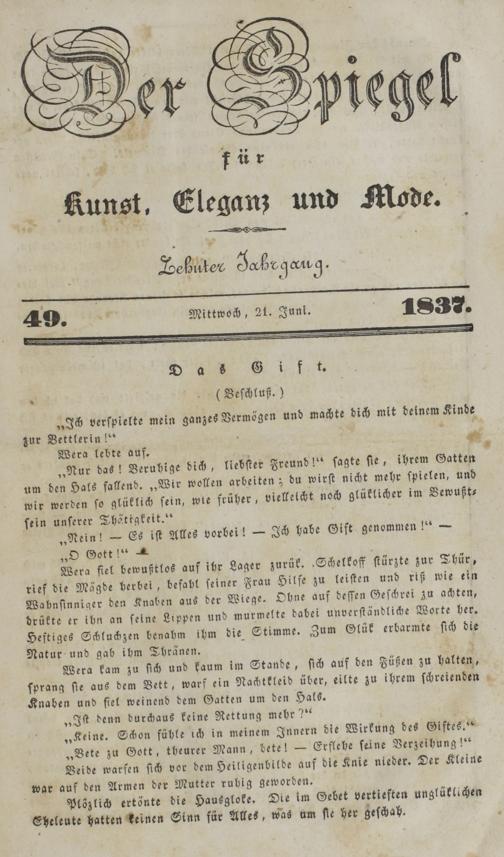 Der Spiegel für Kunst, Eleganz und Mode. 1835-1840