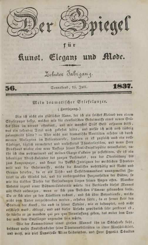 Der Spiegel für Kunst, Eleganz und Mode. 1835-1840