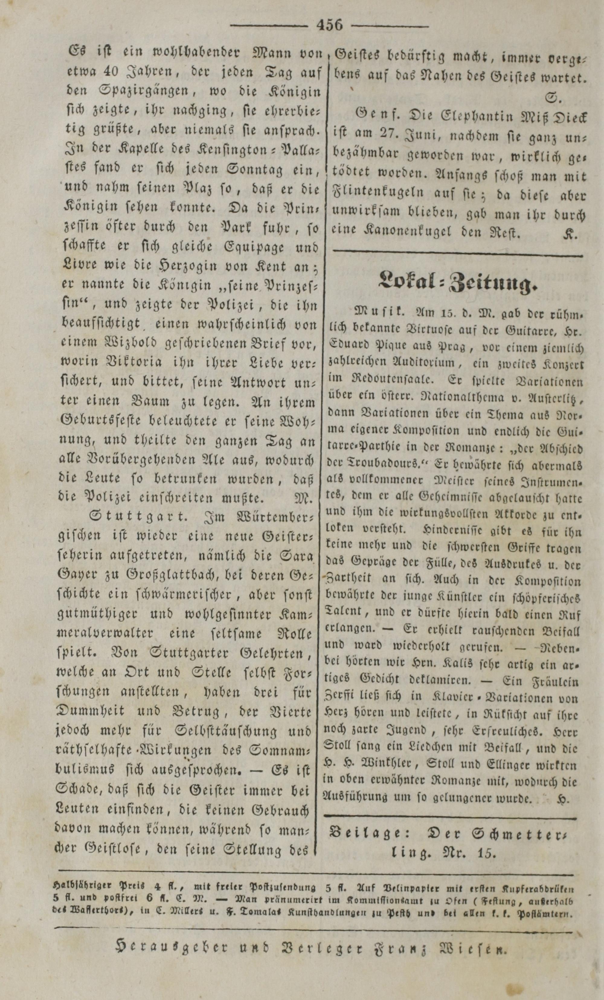 Der Spiegel für Kunst, Eleganz und Mode. 1835-1840