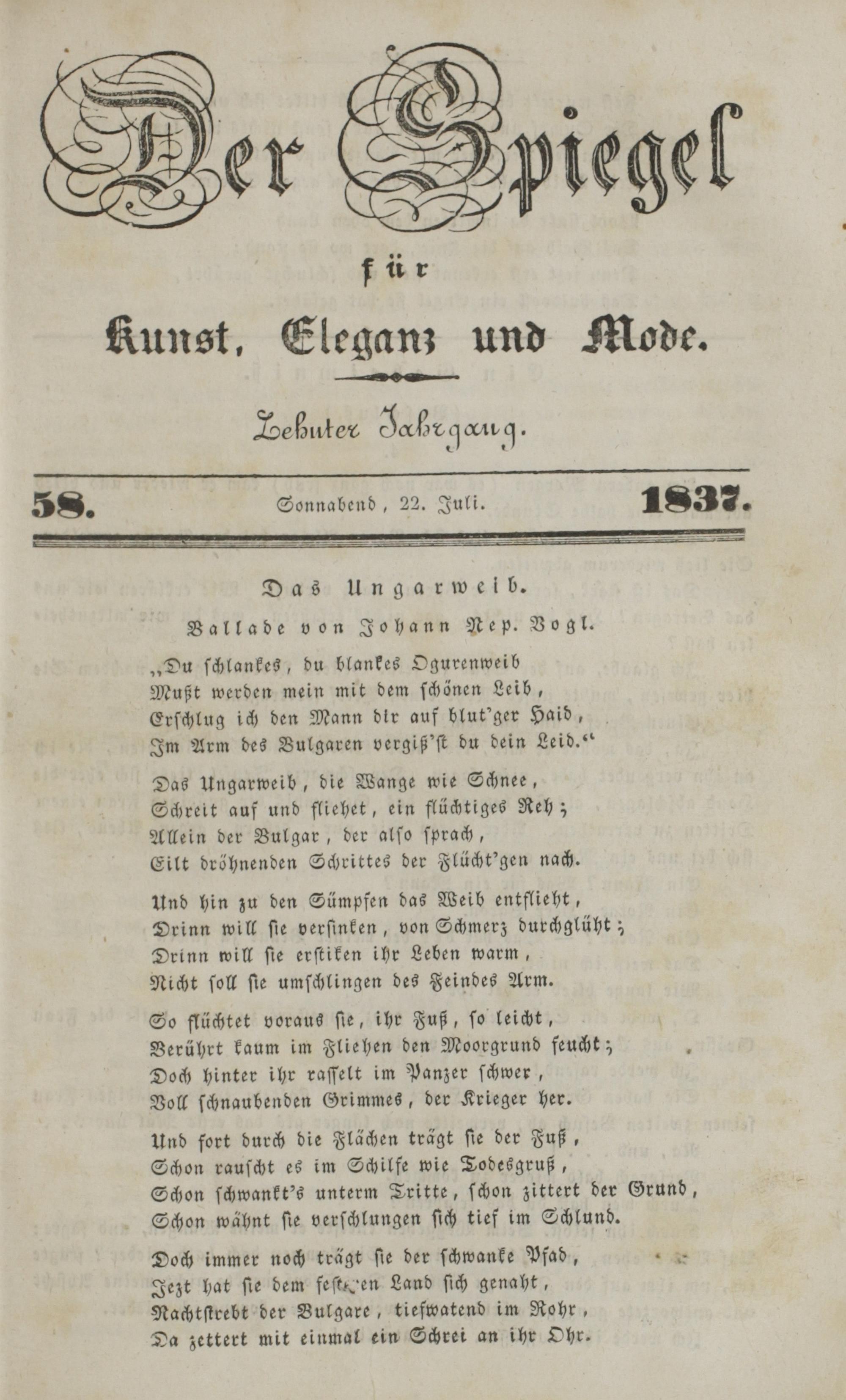 Der Spiegel für Kunst, Eleganz und Mode. 1835-1840