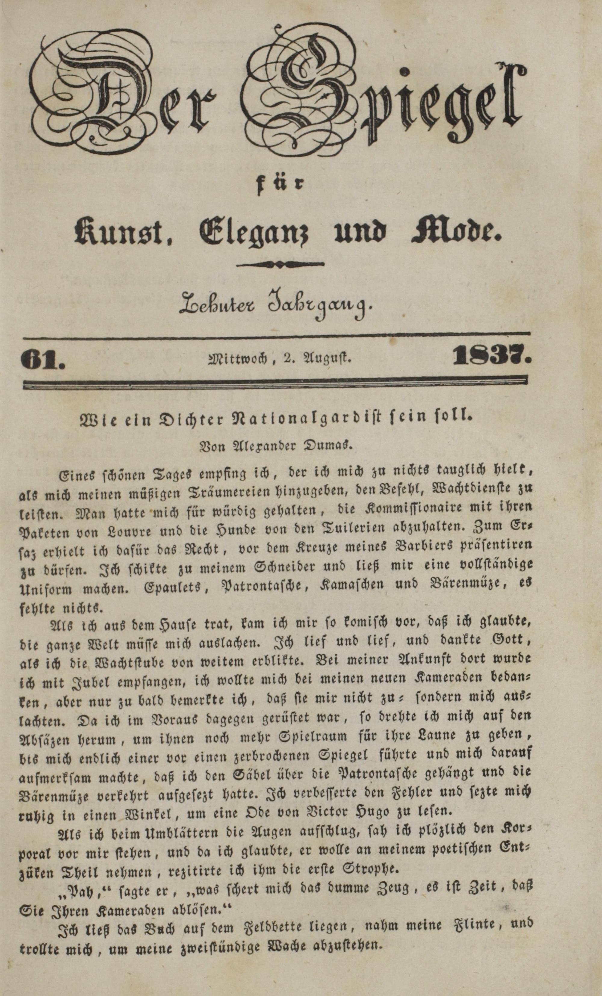 Der Spiegel für Kunst, Eleganz und Mode. 1835-1840