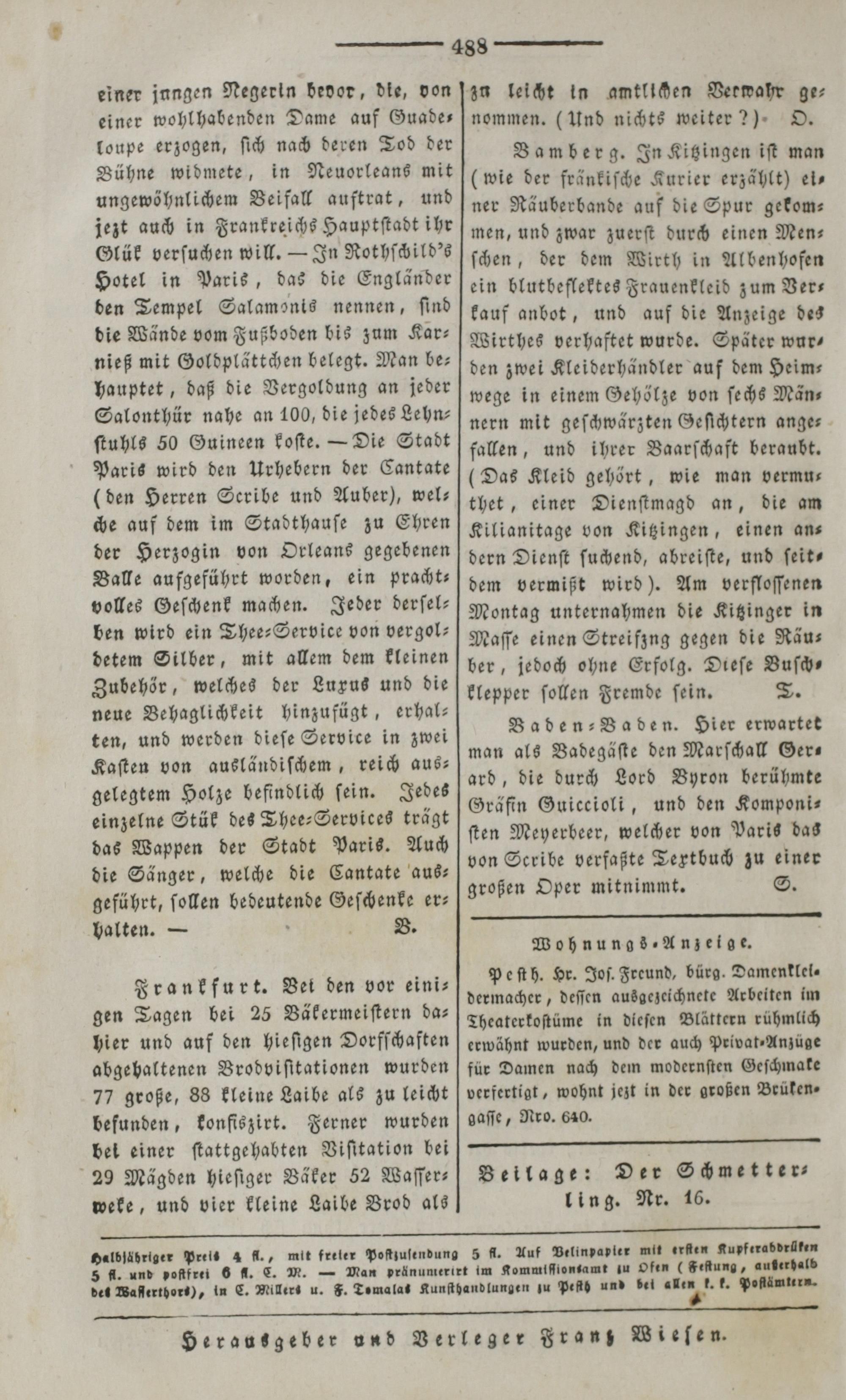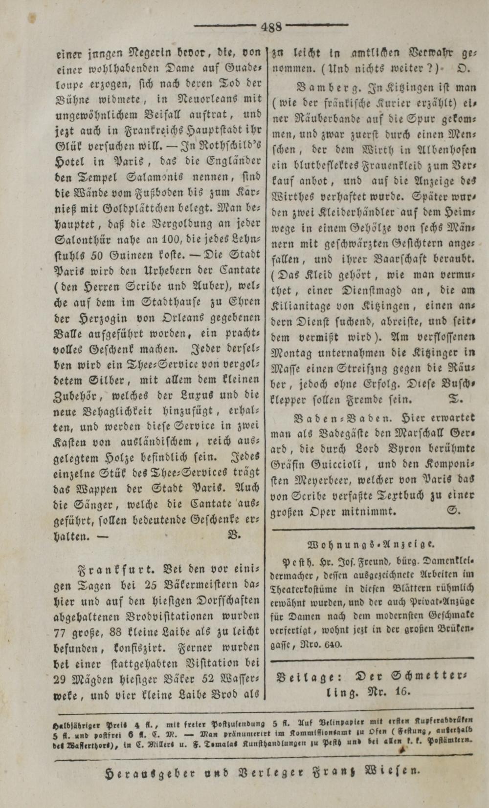 Der Spiegel für Kunst, Eleganz und Mode. 1835-1840