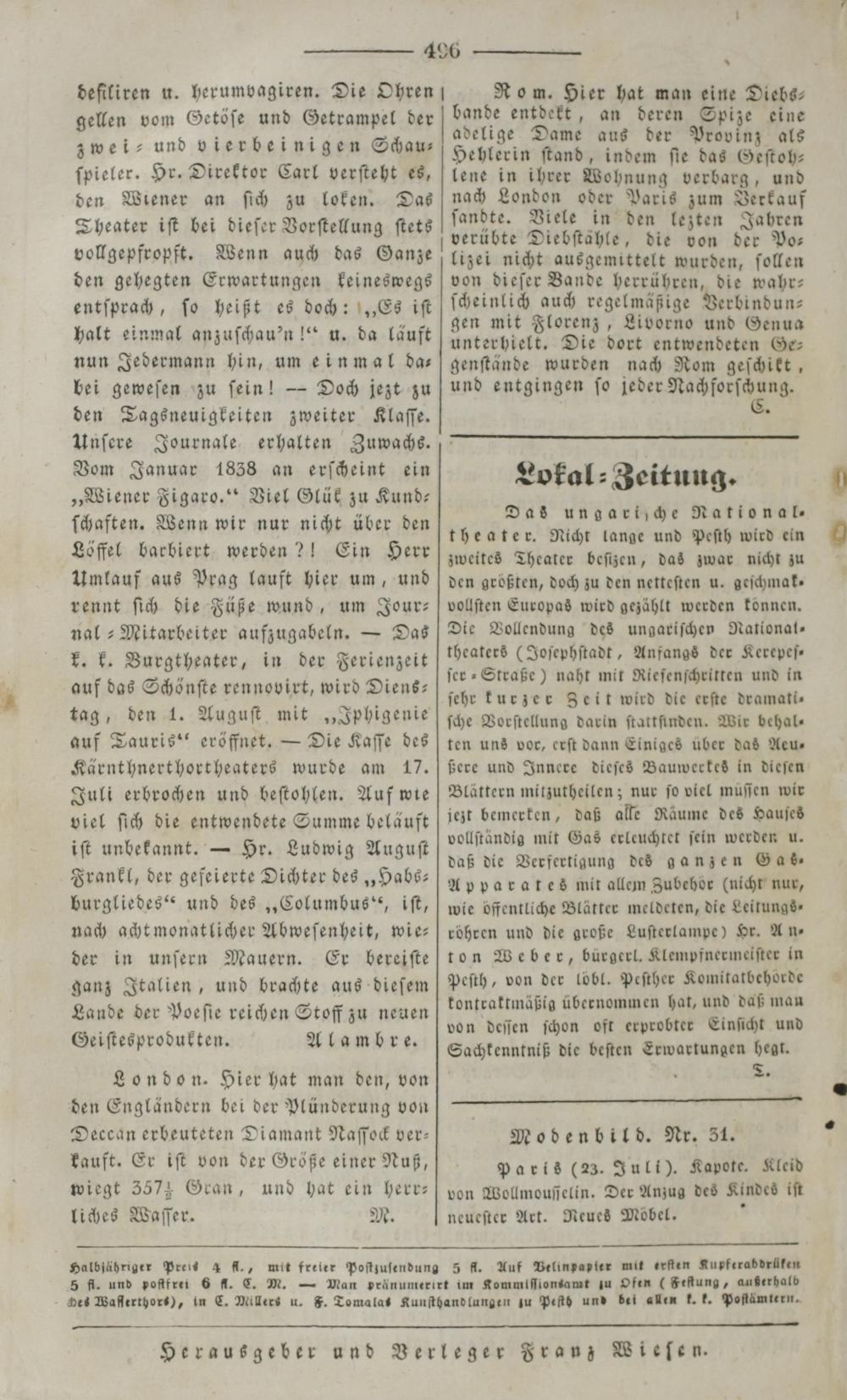 Der Spiegel für Kunst, Eleganz und Mode. 1835-1840