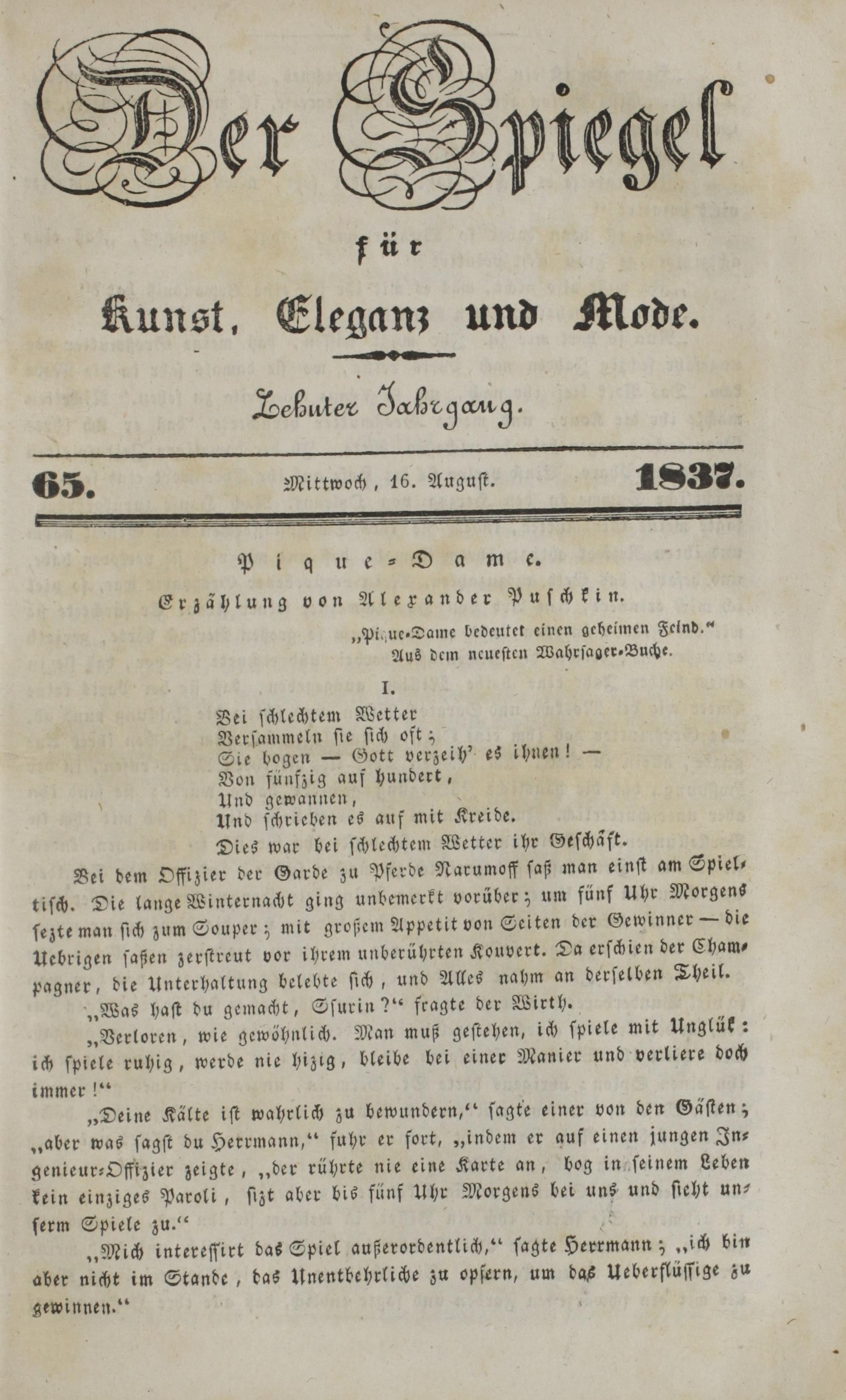 Der Spiegel für Kunst, Eleganz und Mode. 1835-1840