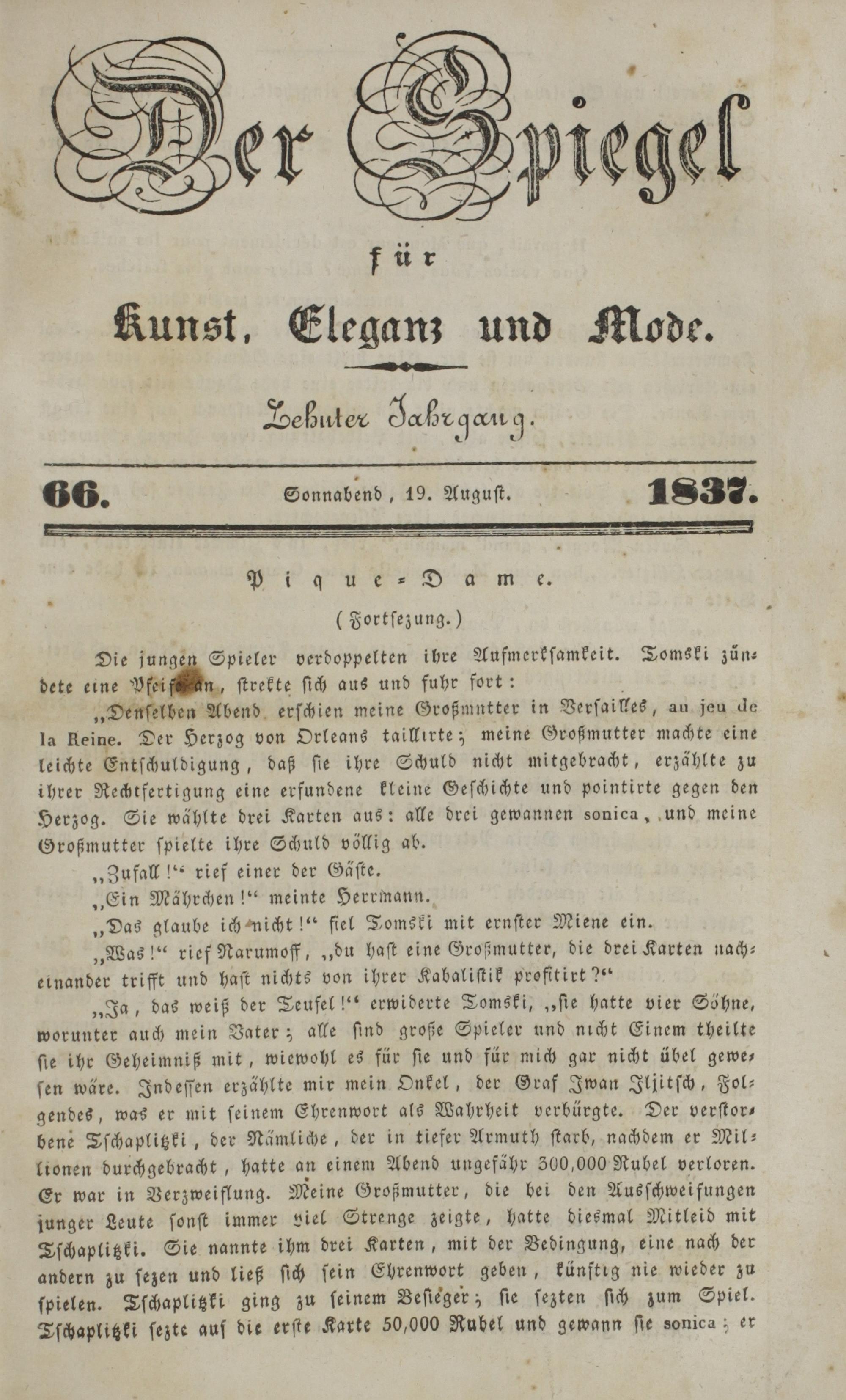 Der Spiegel für Kunst, Eleganz und Mode. 1835-1840