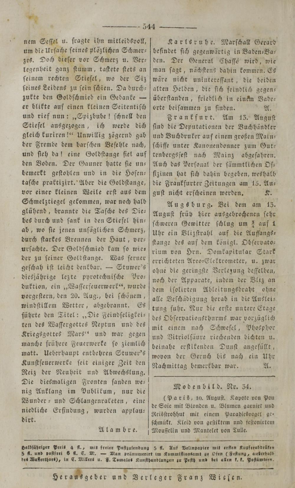Der Spiegel für Kunst, Eleganz und Mode. 1835-1840
