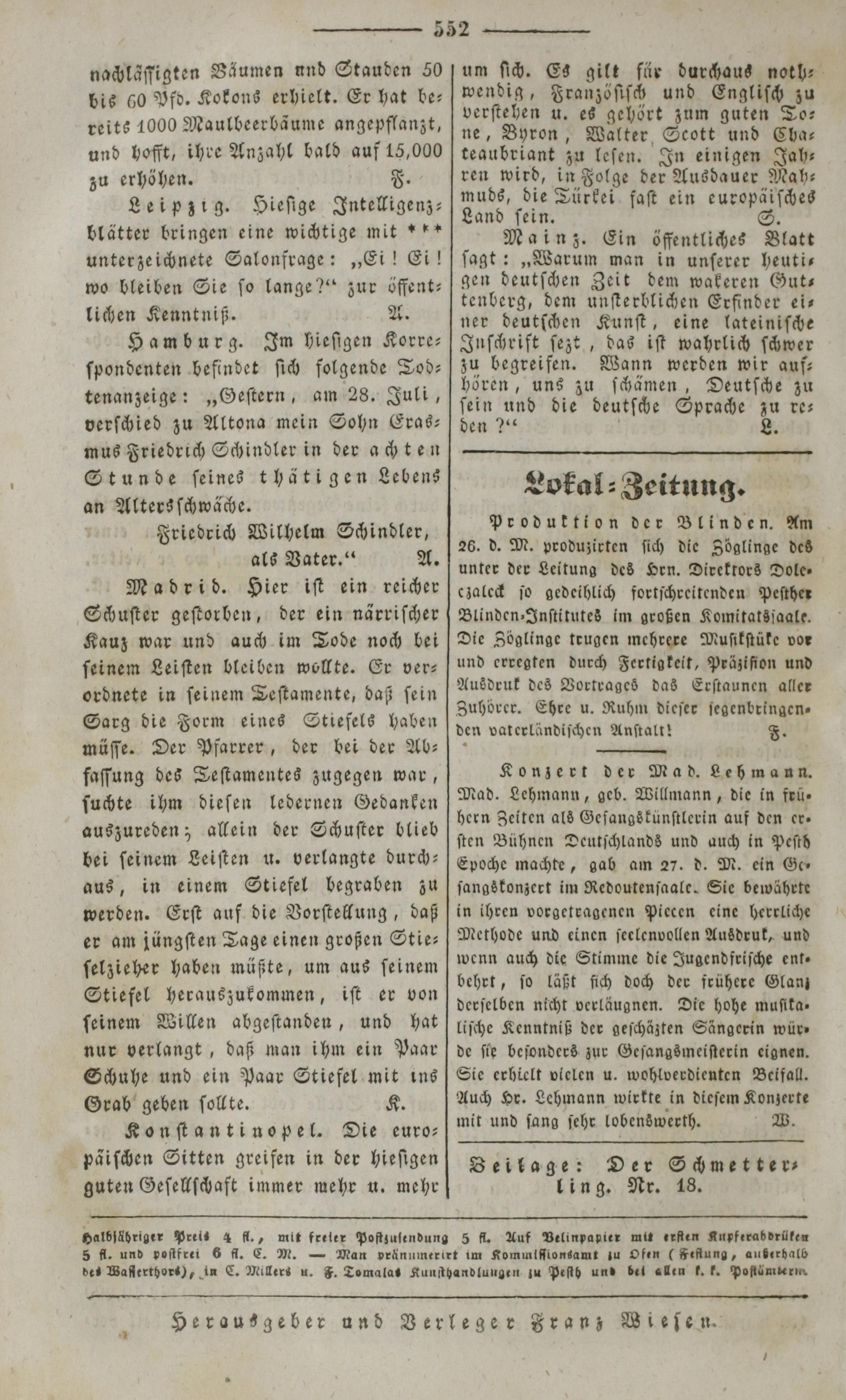 Der Spiegel für Kunst, Eleganz und Mode. 1835-1840