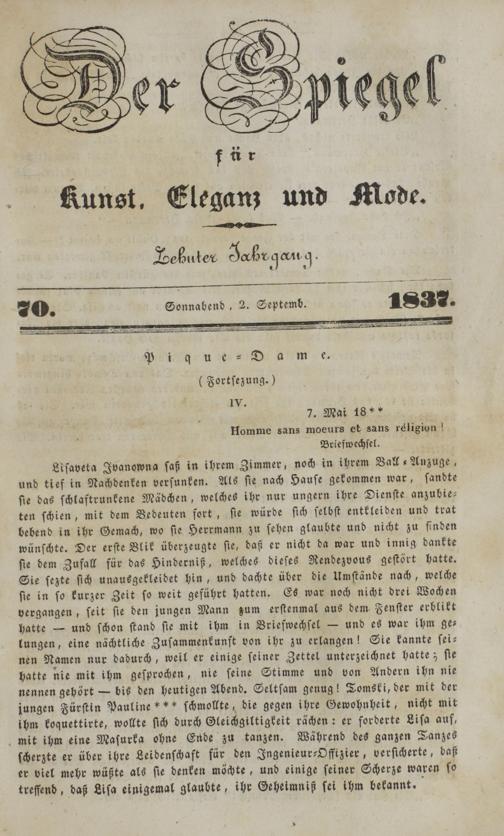 Der Spiegel für Kunst, Eleganz und Mode. 1835-1840