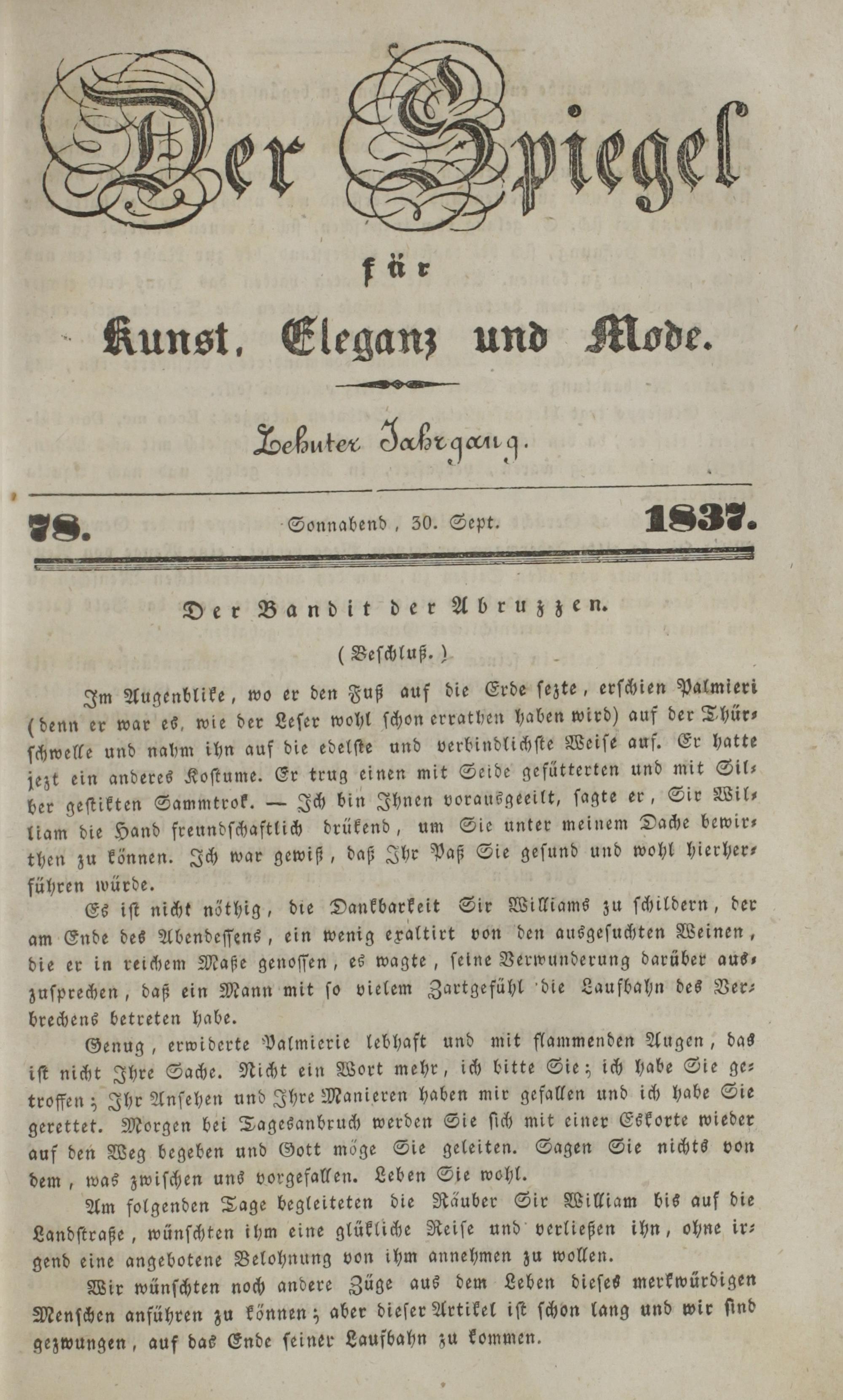 Der Spiegel für Kunst, Eleganz und Mode. 1835-1840