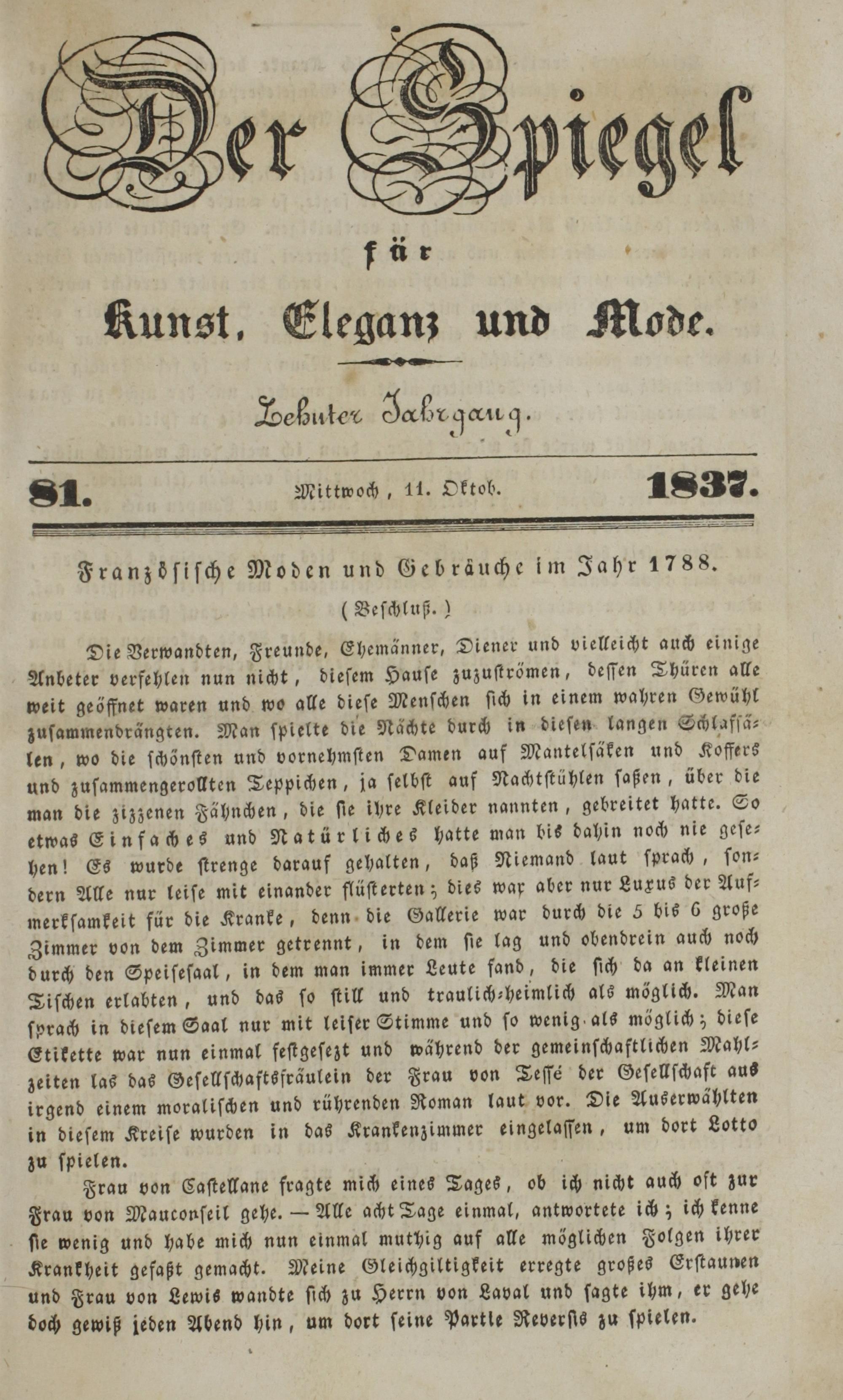 Der Spiegel für Kunst, Eleganz und Mode. 1835-1840