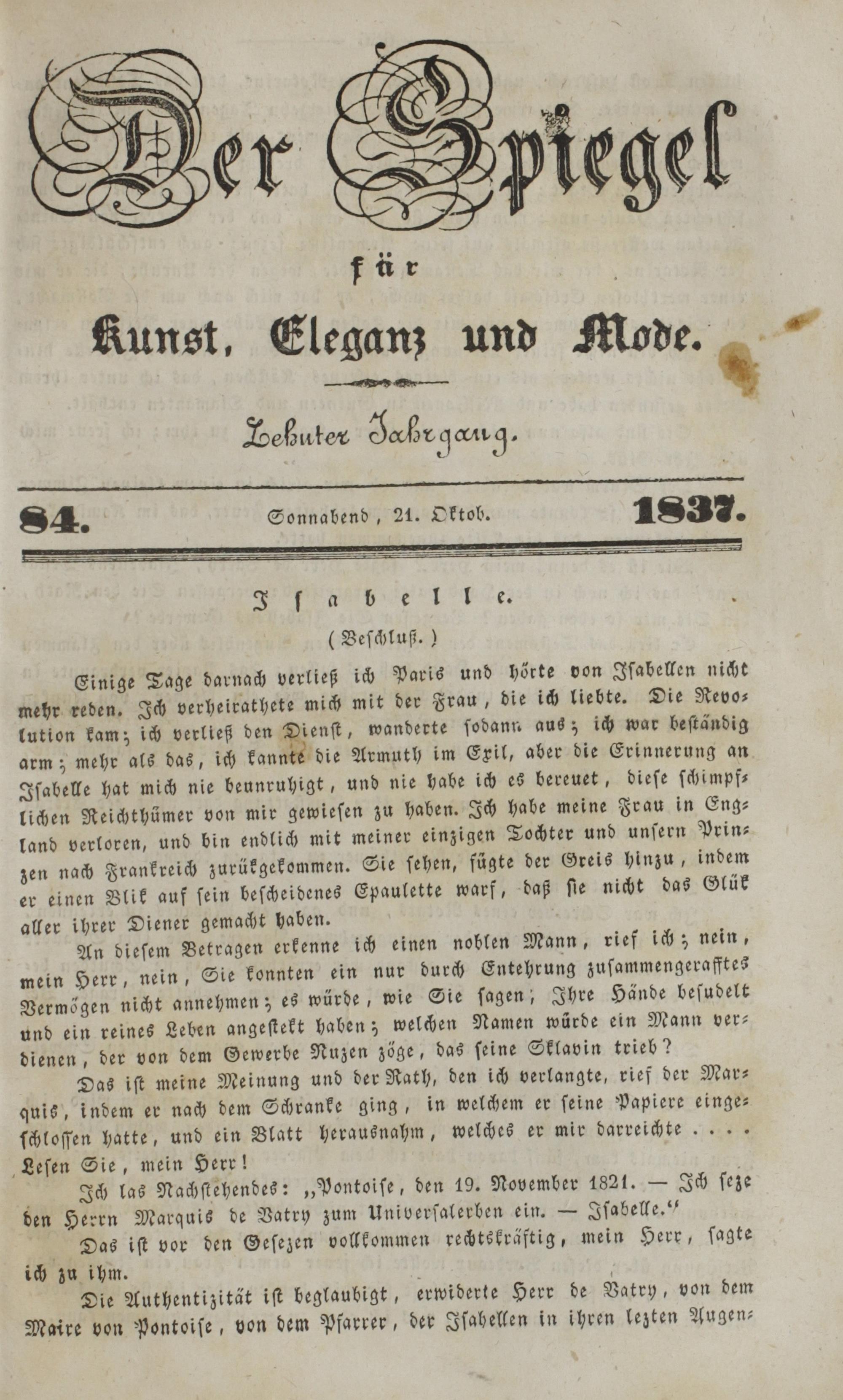Der Spiegel für Kunst, Eleganz und Mode. 1835-1840