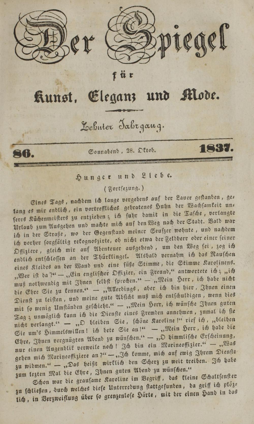 Der Spiegel für Kunst, Eleganz und Mode. 1835-1840