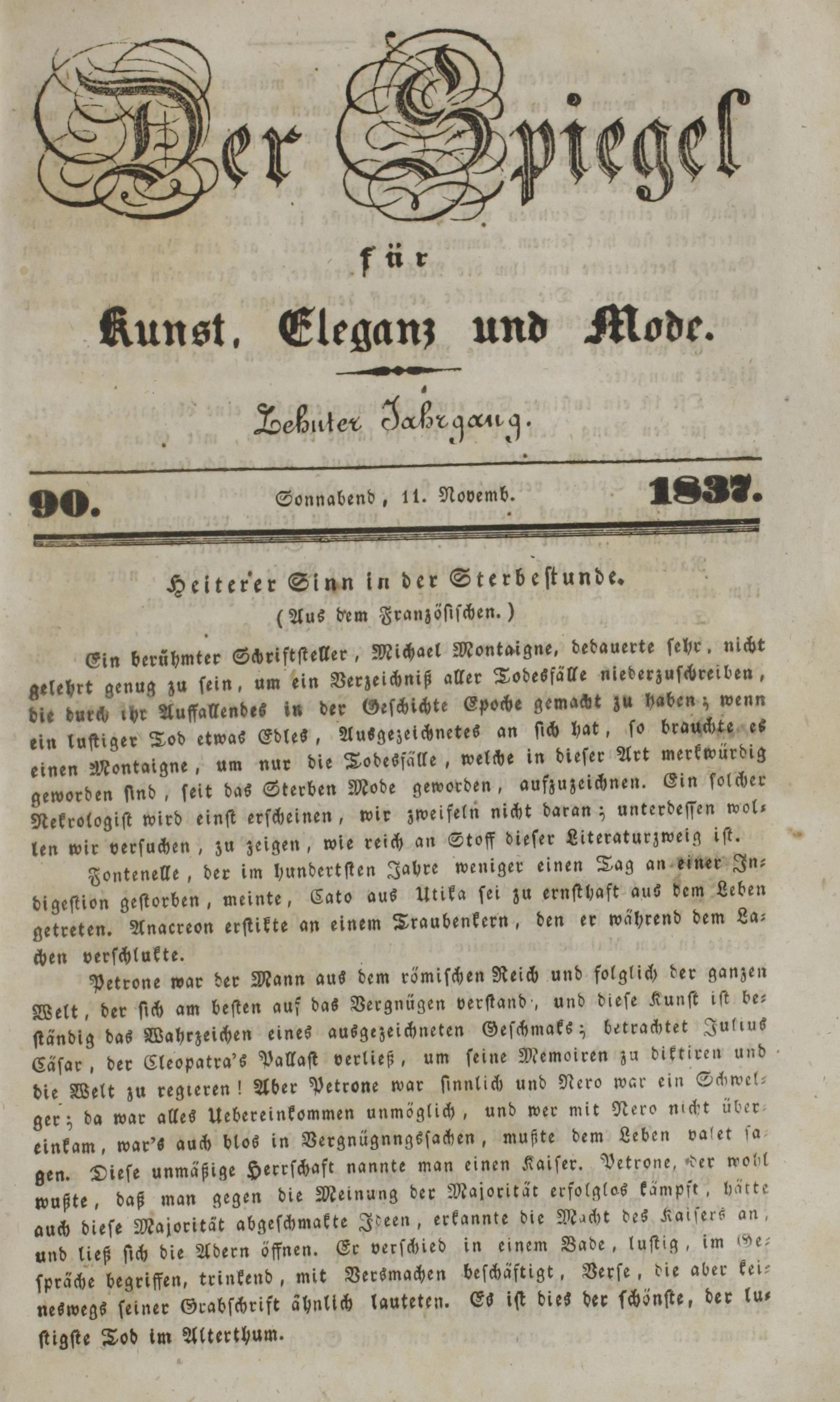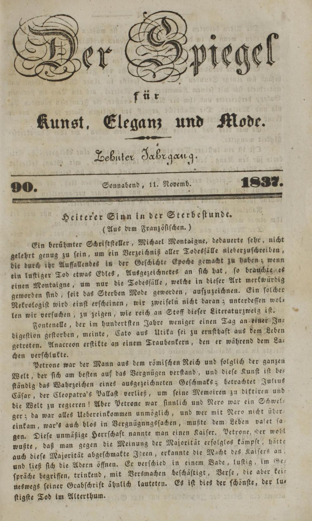 Der Spiegel für Kunst, Eleganz und Mode. 1835-1840