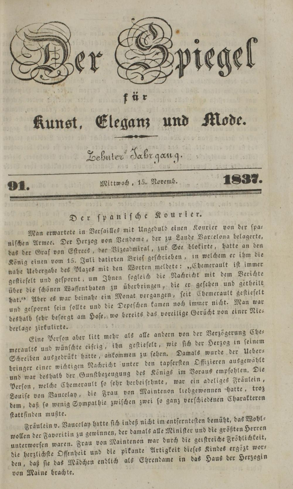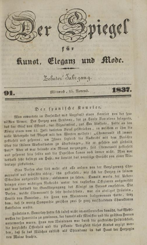 Der Spiegel für Kunst, Eleganz und Mode. 1835-1840