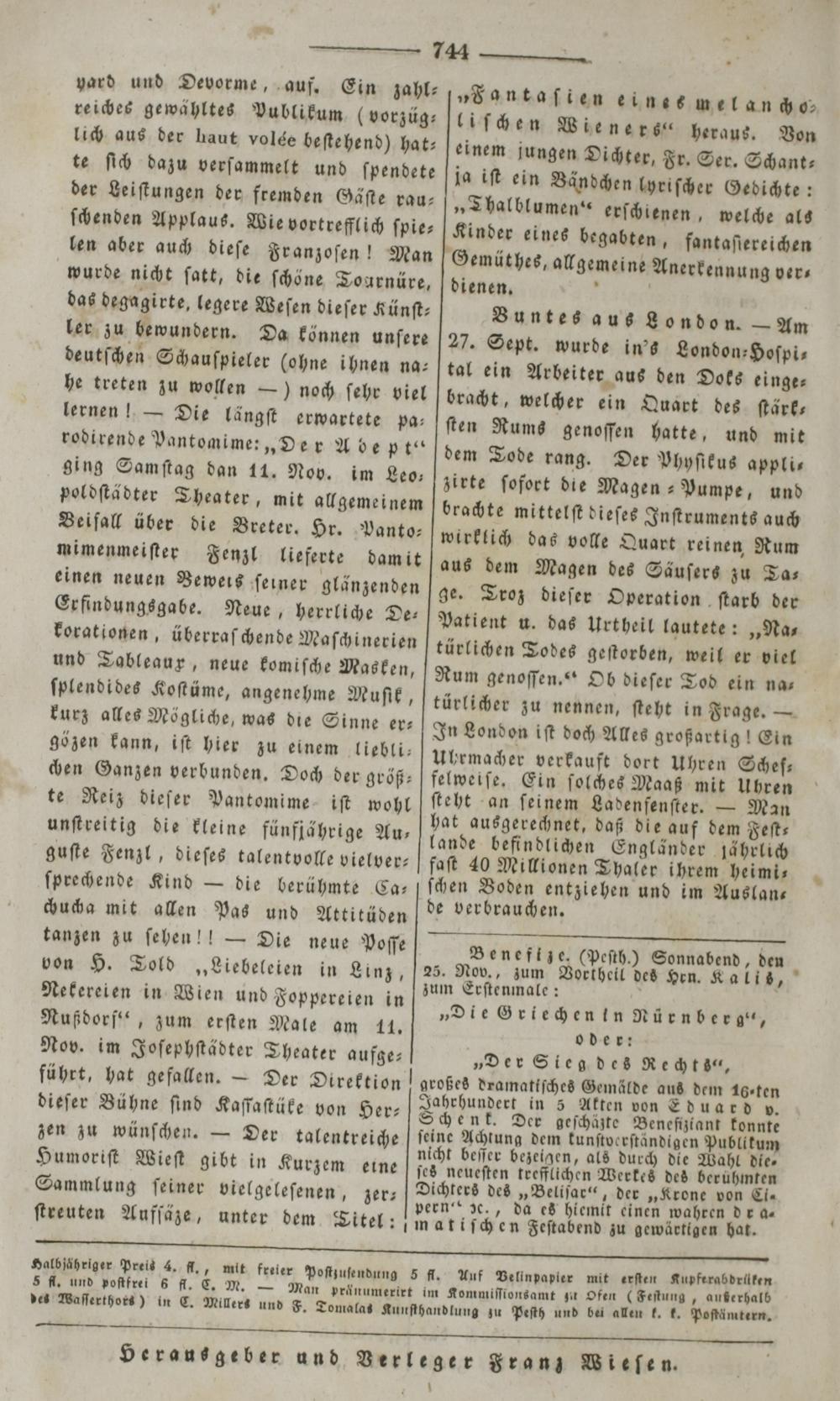 Der Spiegel für Kunst, Eleganz und Mode. 1835-1840