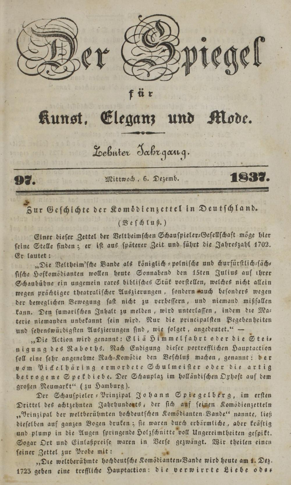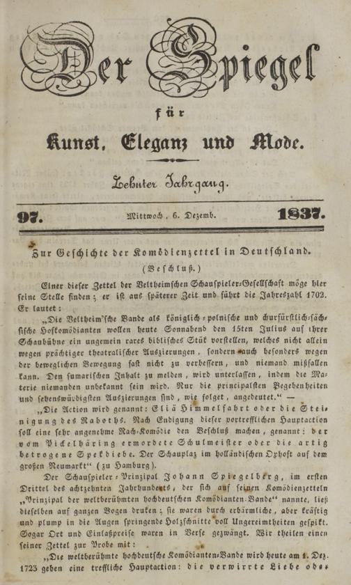 Der Spiegel für Kunst, Eleganz und Mode. 1835-1840