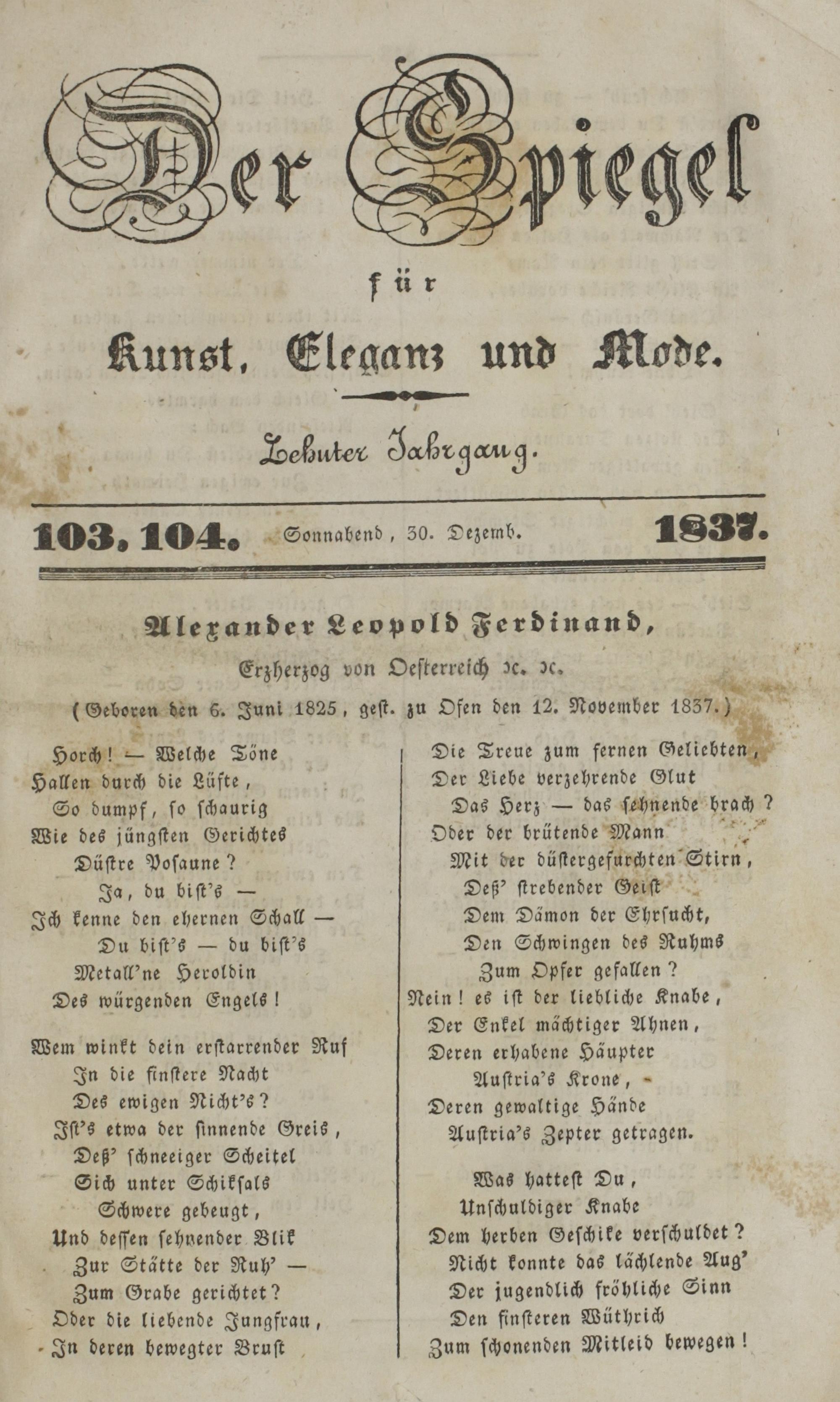 Der Spiegel für Kunst, Eleganz und Mode. 1835-1840
